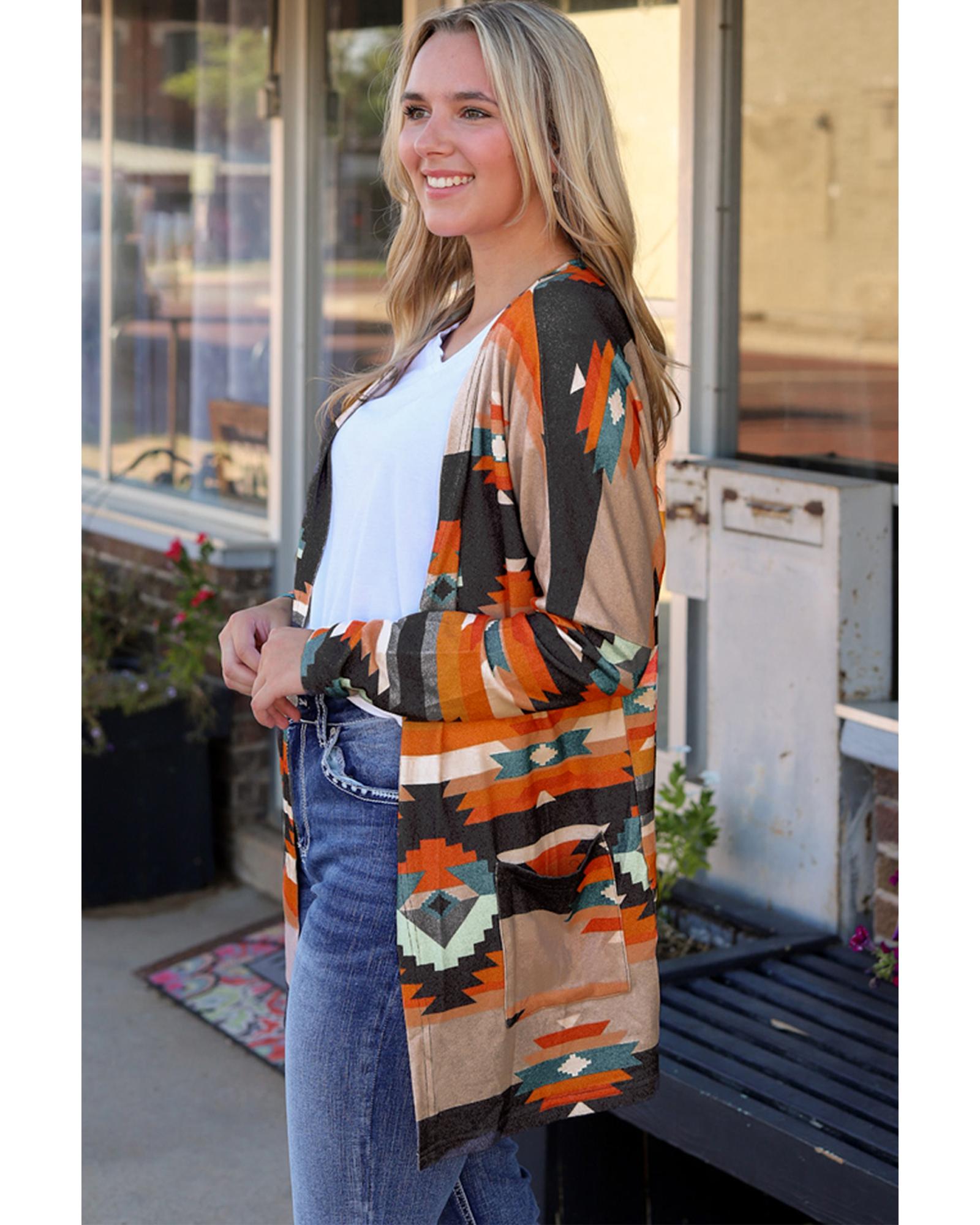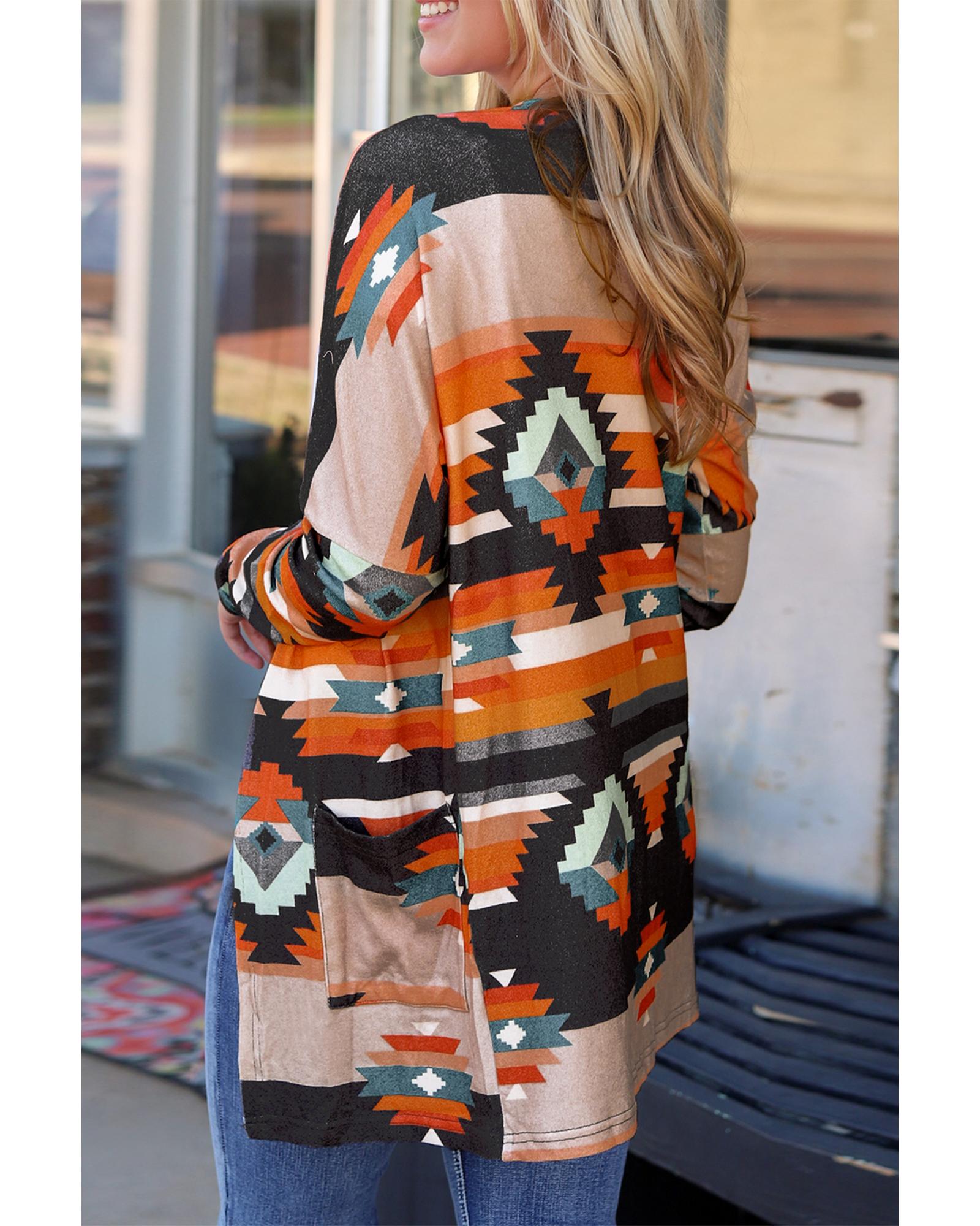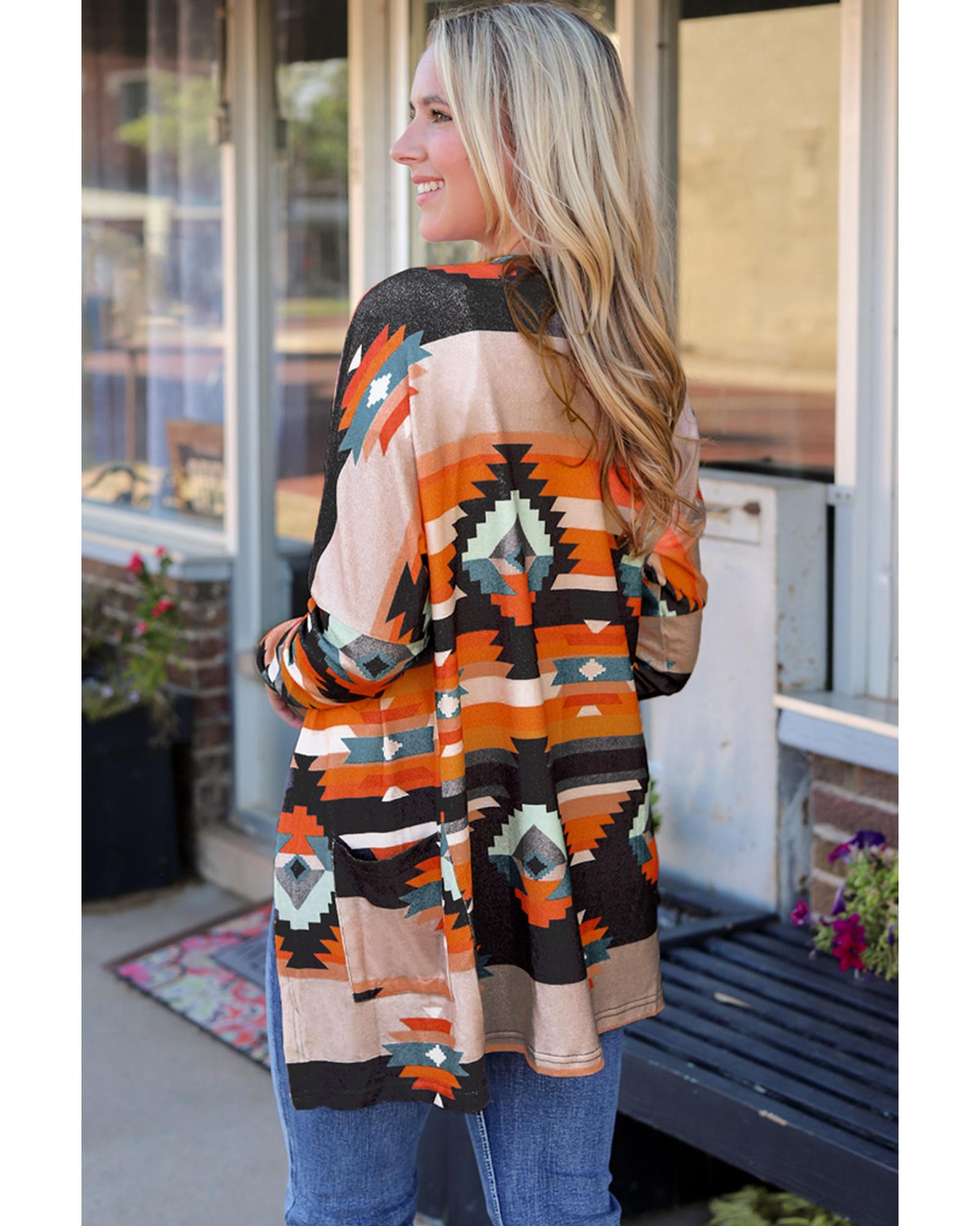 Orange Western Tribal Aztec Print Cardigan – S