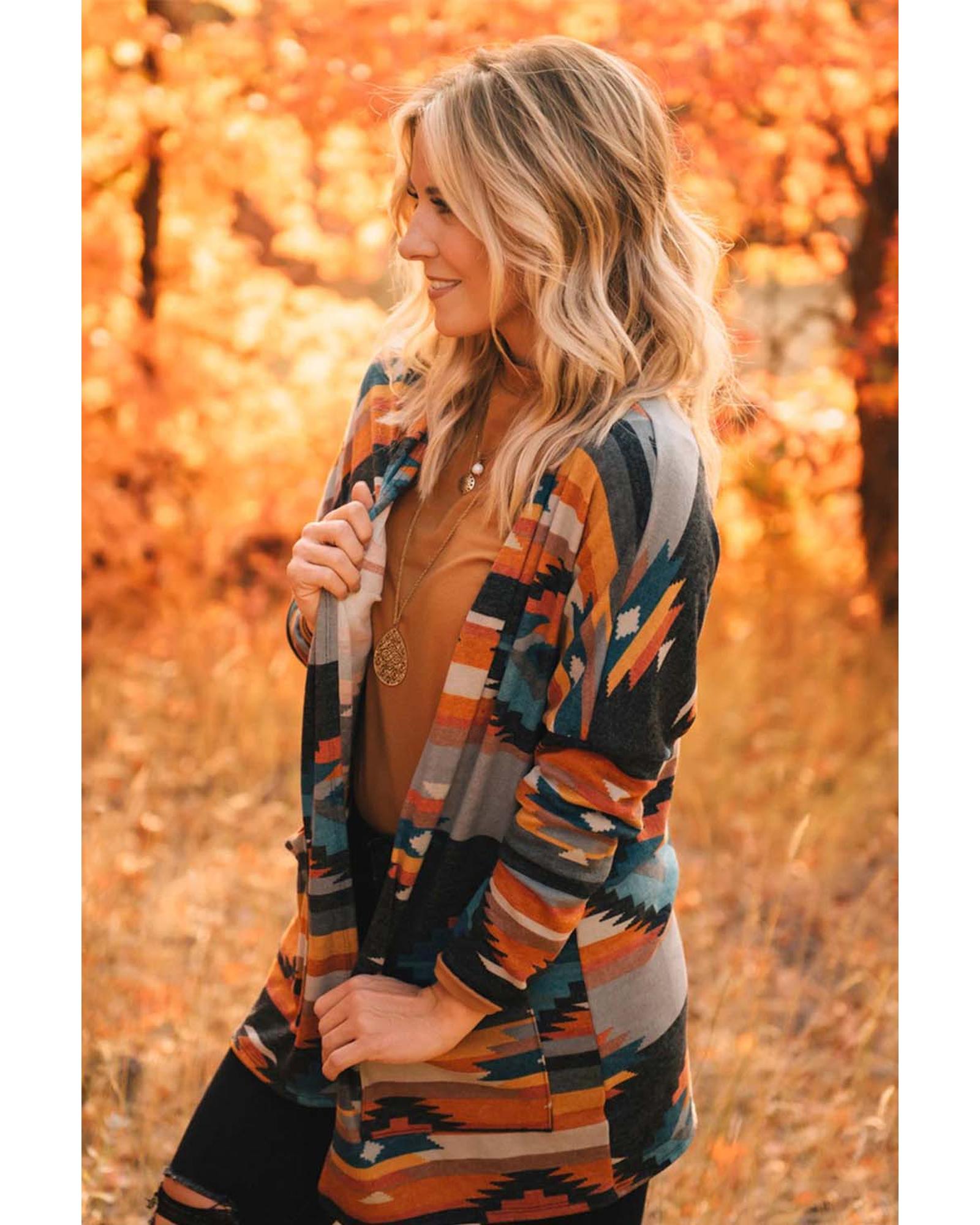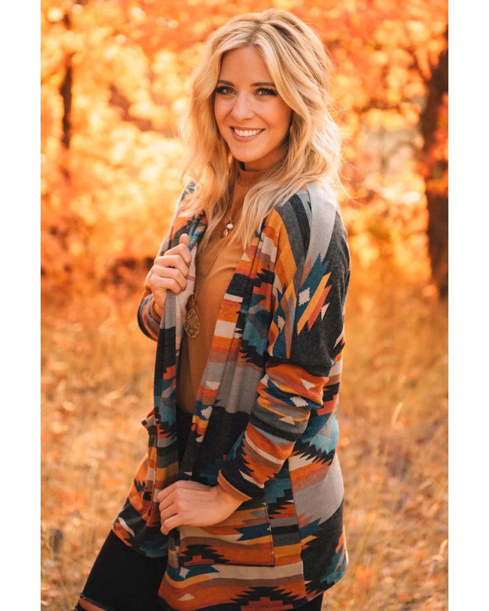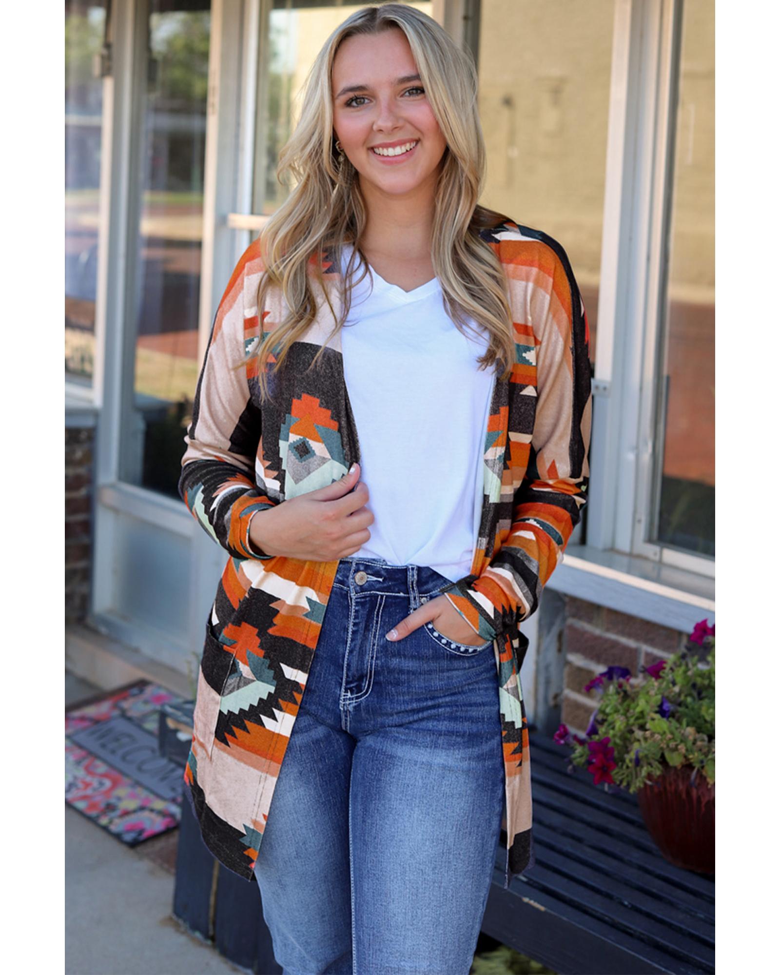 Orange Western Tribal Aztec Print Cardigan – S