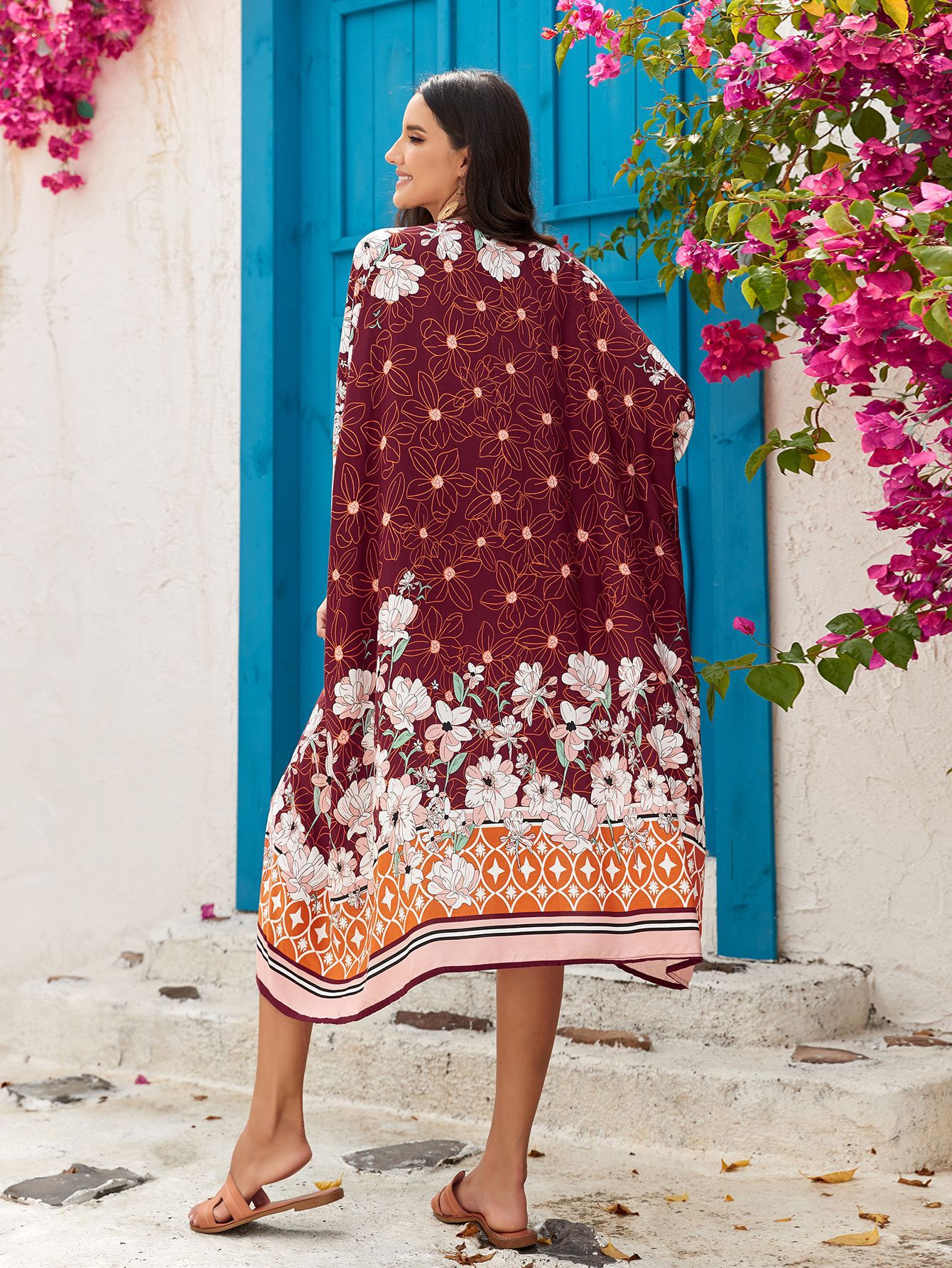 Embrace bohemian chic with this stunning floral print rayon kimono cardigan. Perfect for layering over your swimsuit at the beach or adding a touch of elegance to your everyday outfits. This lightweight and breathable cover-up offers both style and sun protection.