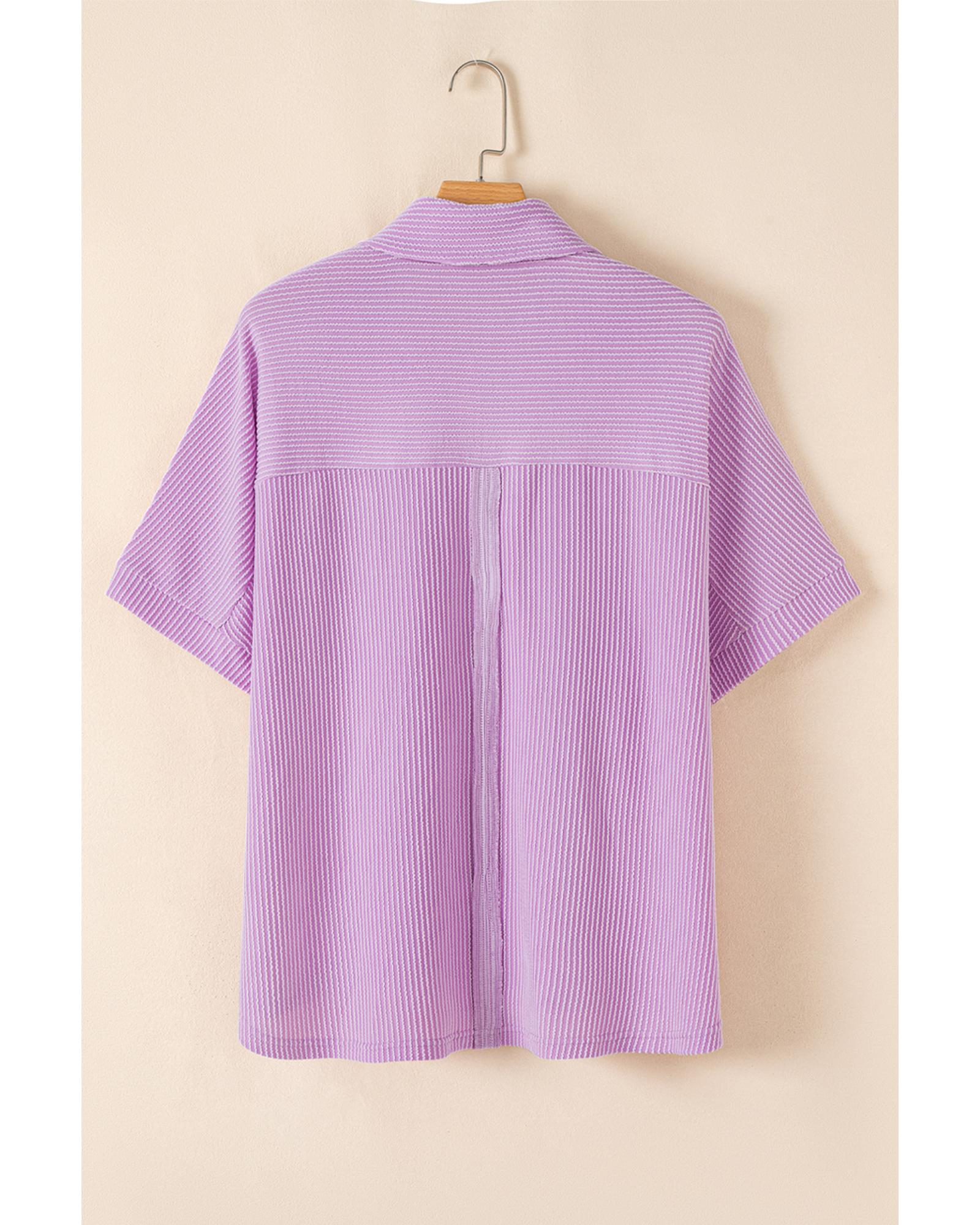 Orchid Bouquet Corded Flap Pocket Collared Buttoned Short Sleeve Blouse – M