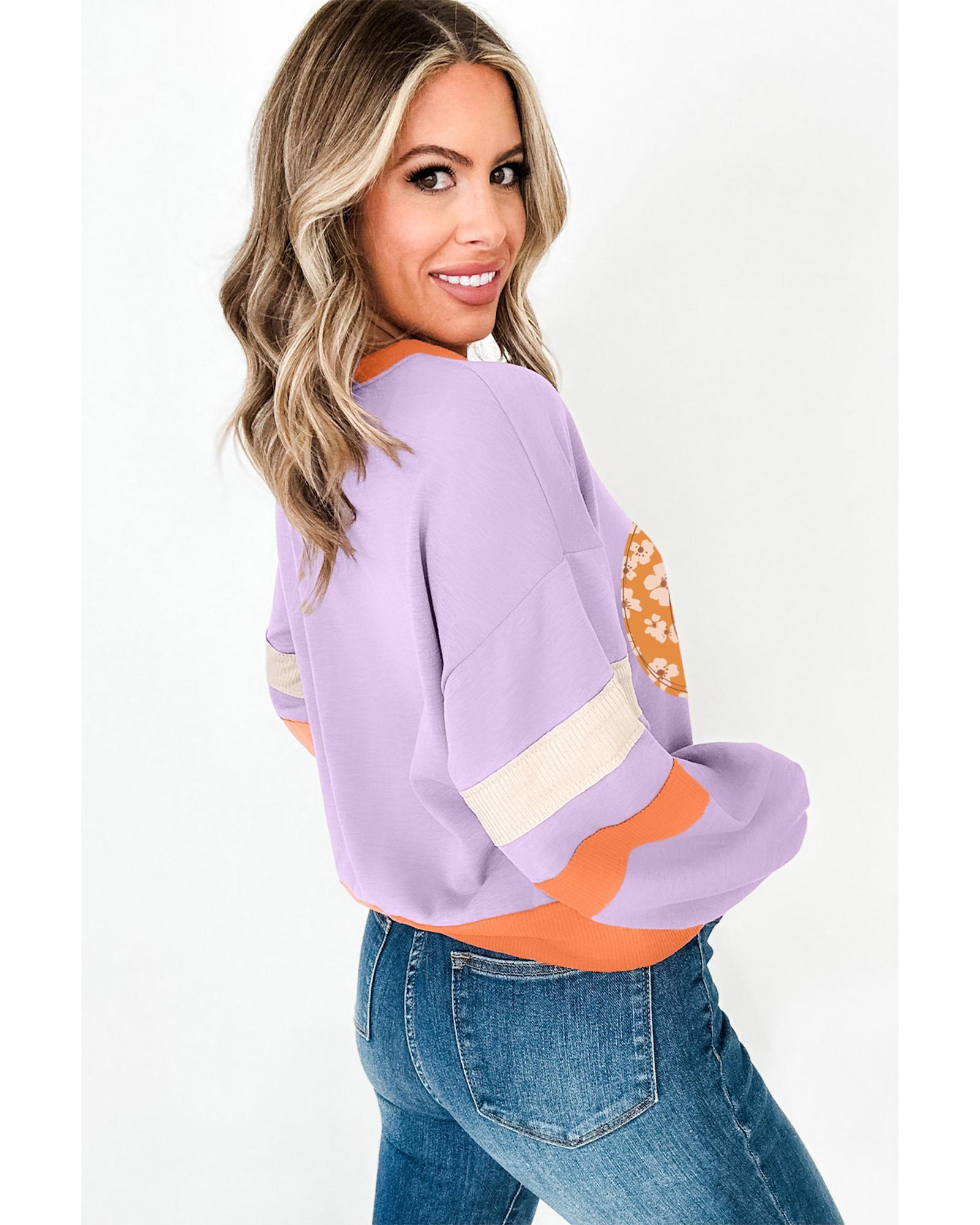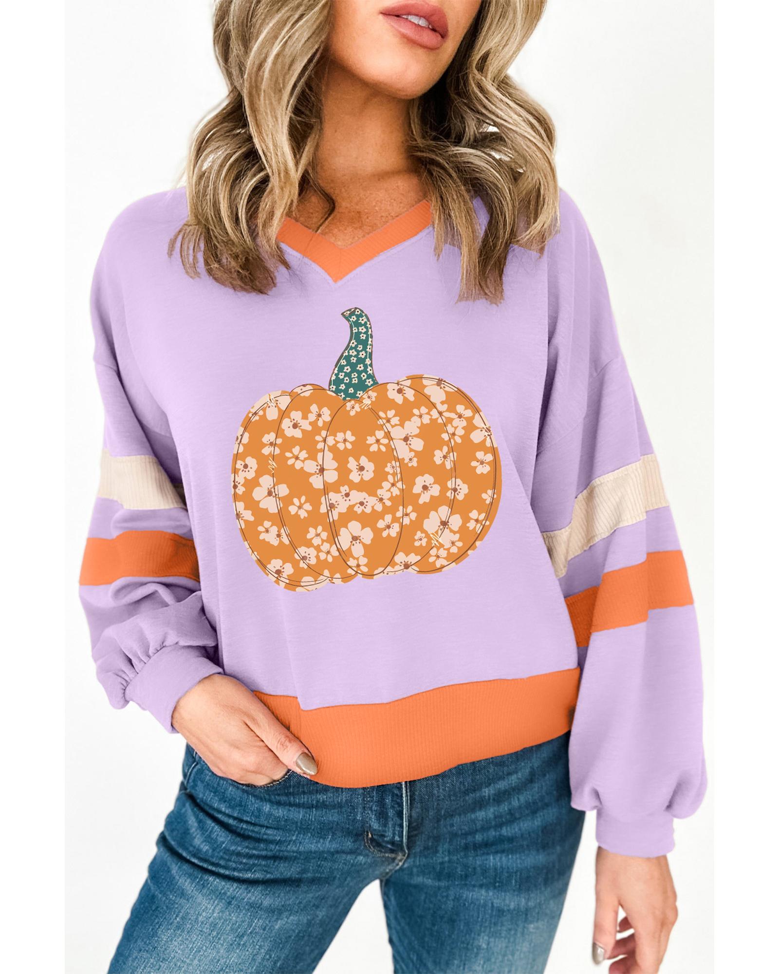 • Orchid Bouquet Halloween Floral Pumpkin Color Block V Neck Sweatshirt