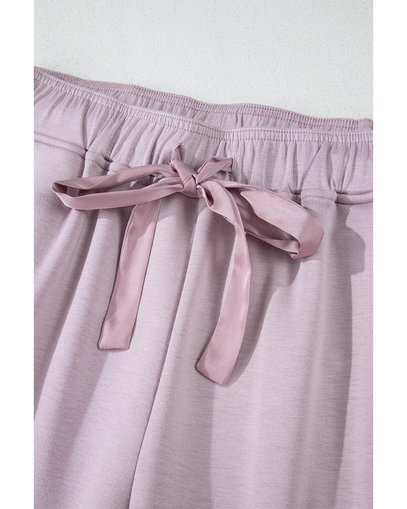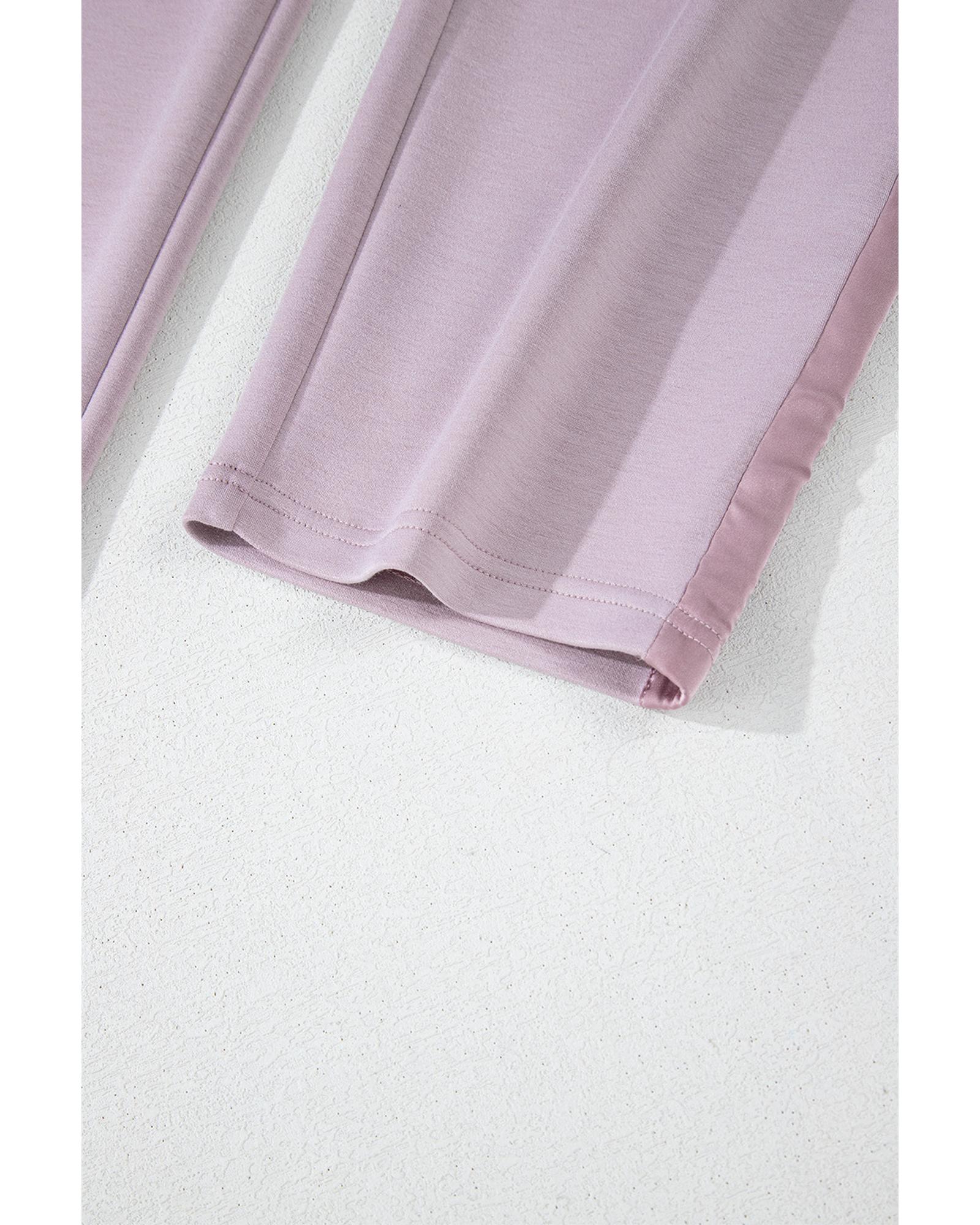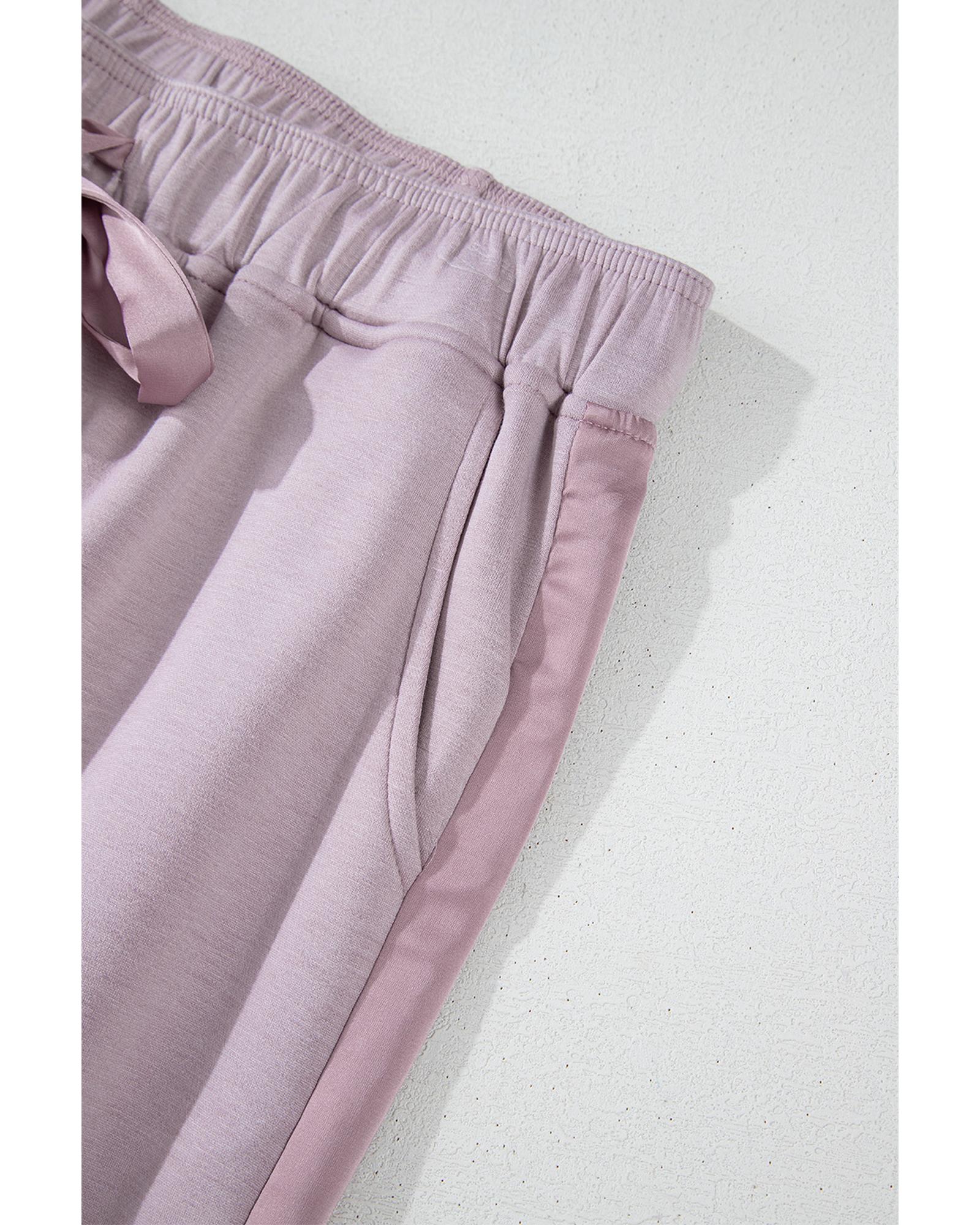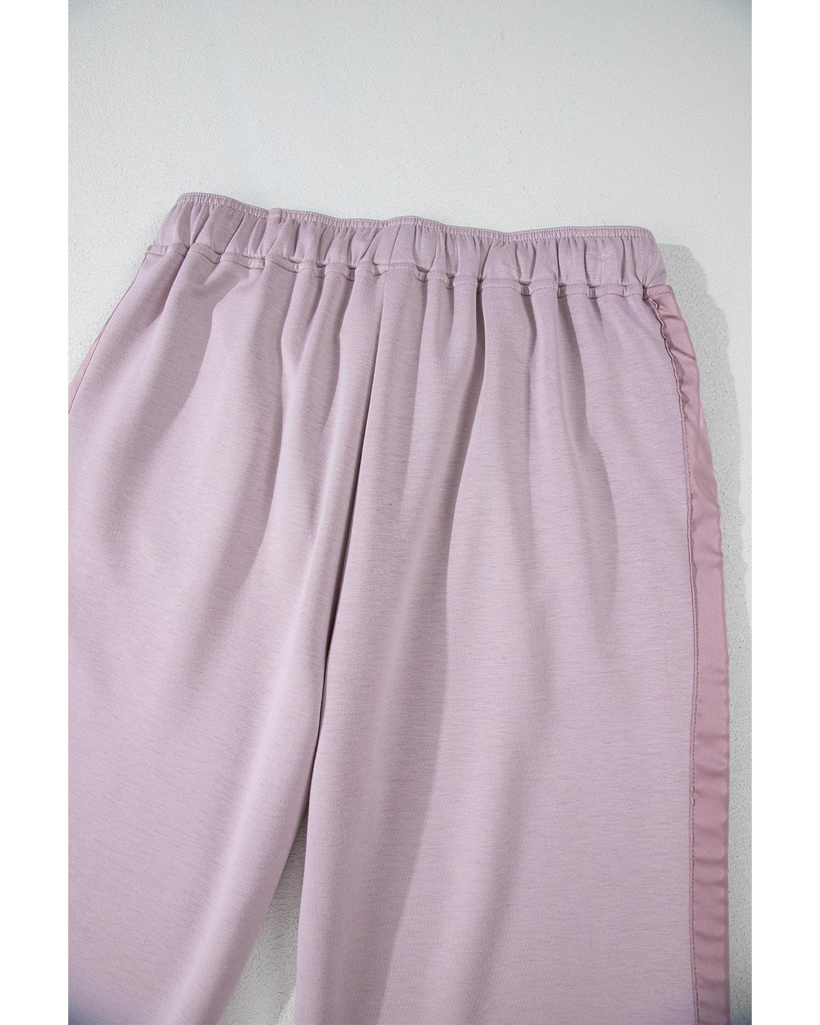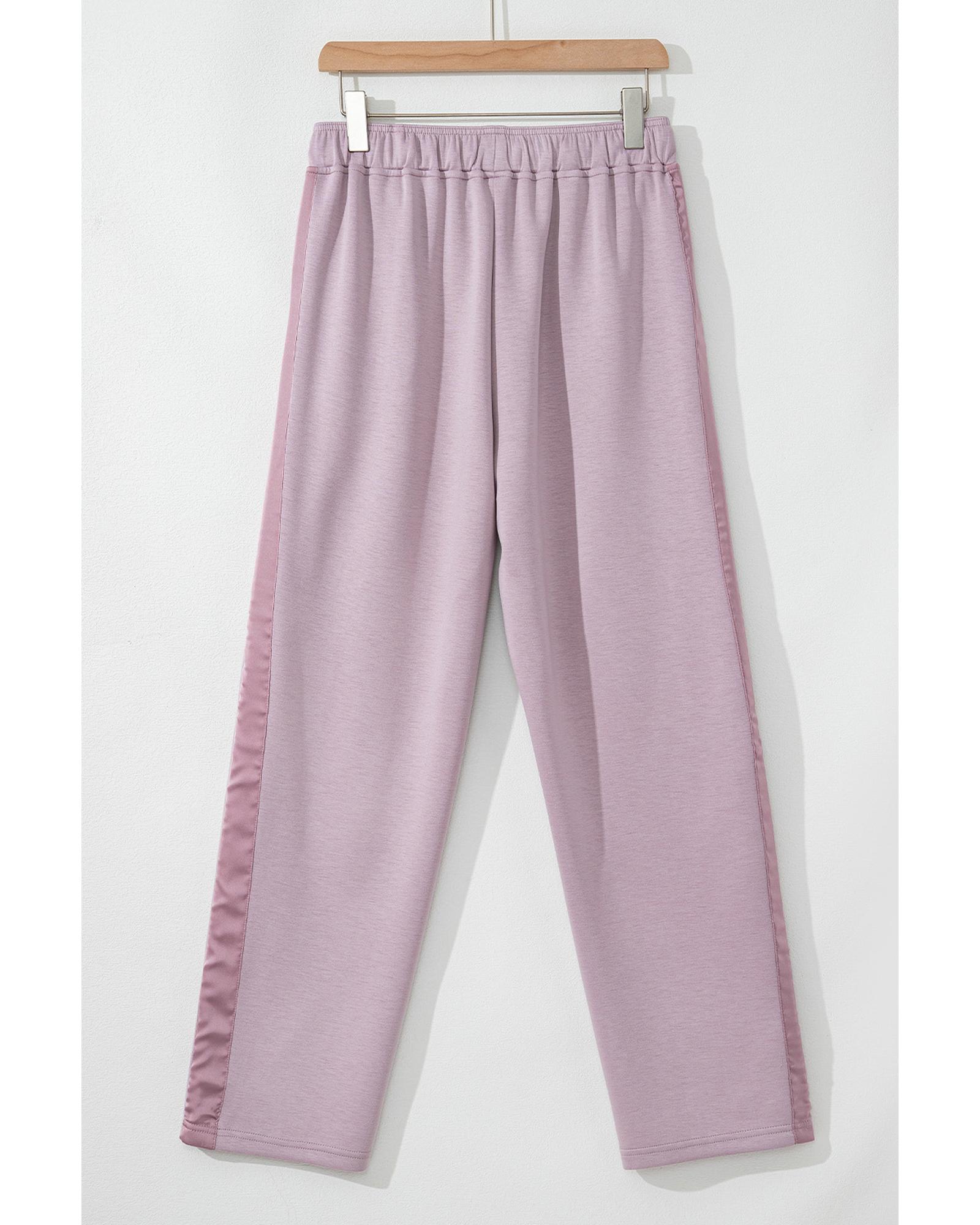 Orchid Petal Drawstring Waist Satin Stripe Patch Straight Leg High Waist Pants – XL