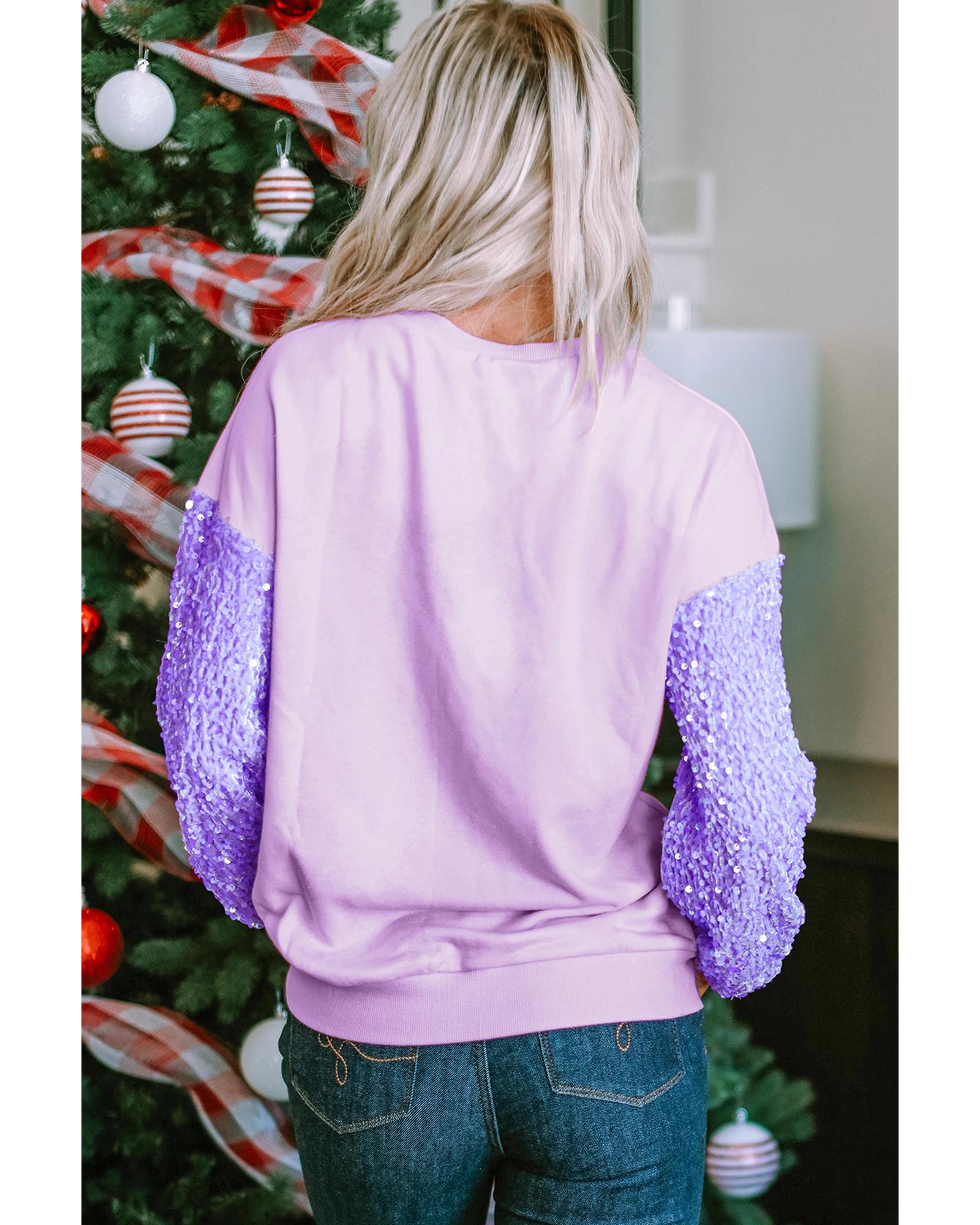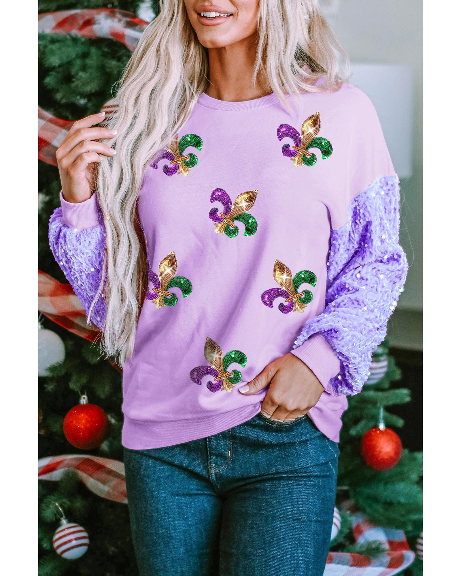 - Orchid Petal Sequin Patchwork Long Sleeve Top