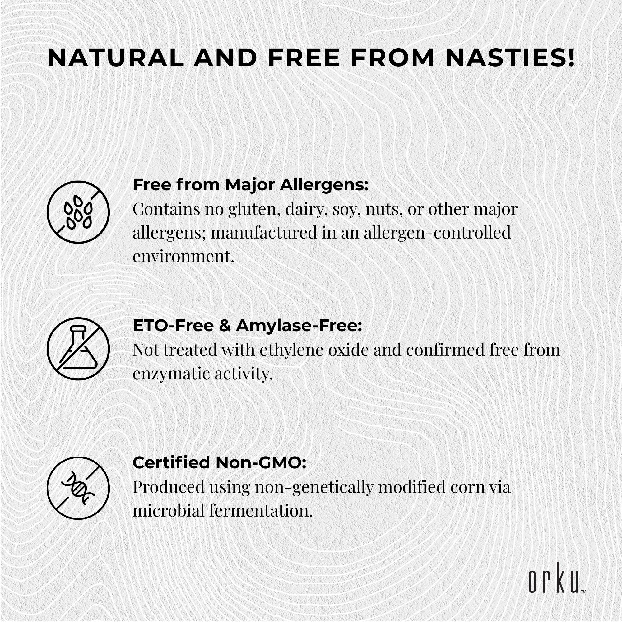- Certified Non-GMO: Produced using non-genetically modified corn via microbial fermentation.