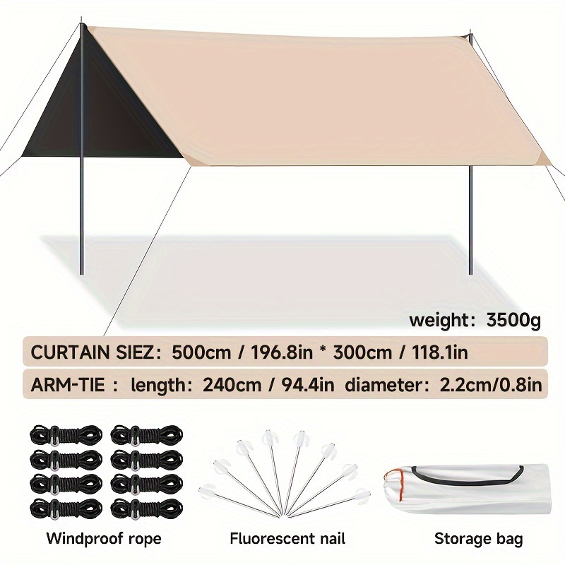 Outdoor camping square sky curtain, black glue sky curtain, sun and rain protection 500*300cm