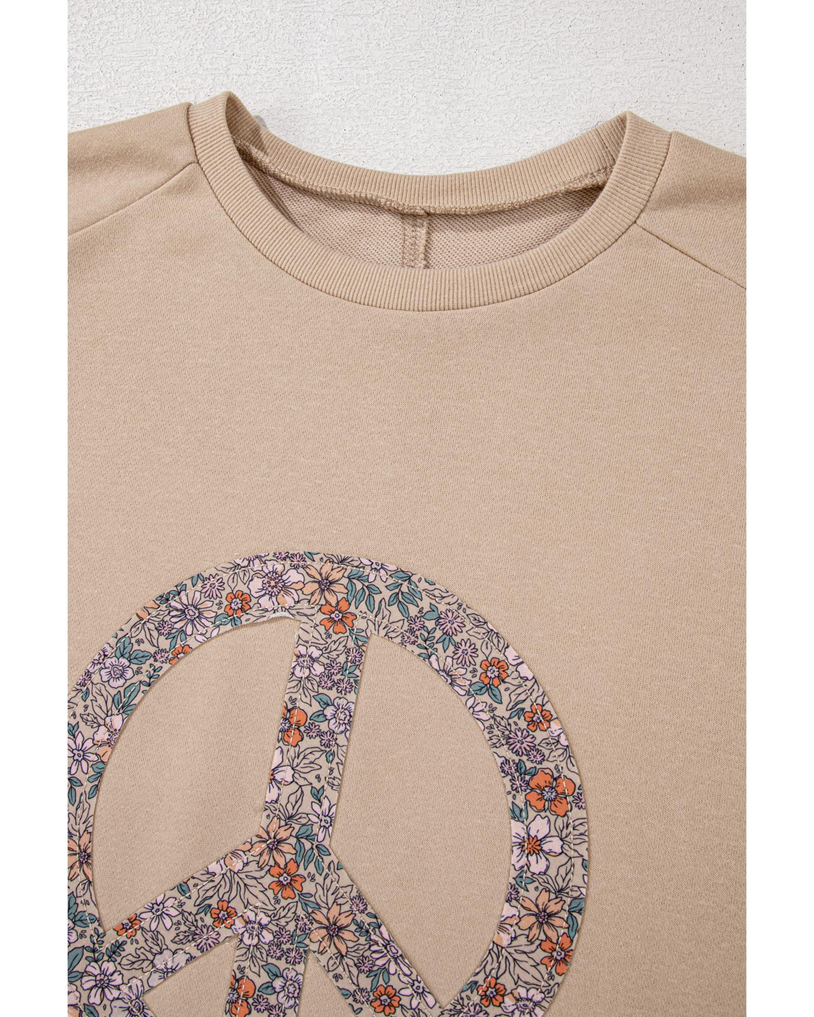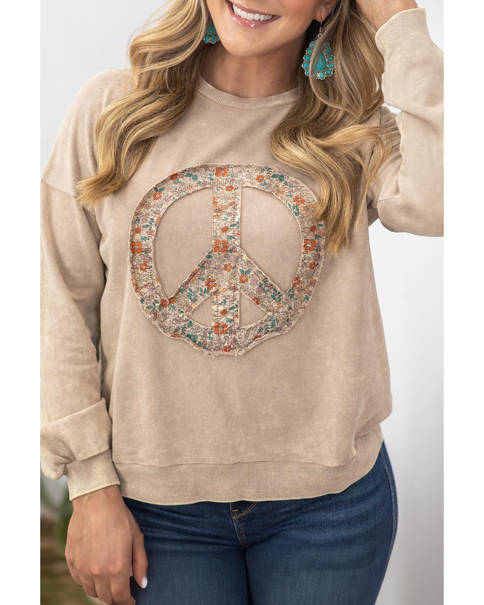 Pale Khaki Floral Peace Sign Graphic Washed Terry Plus Size Sweatshirt – 1X
