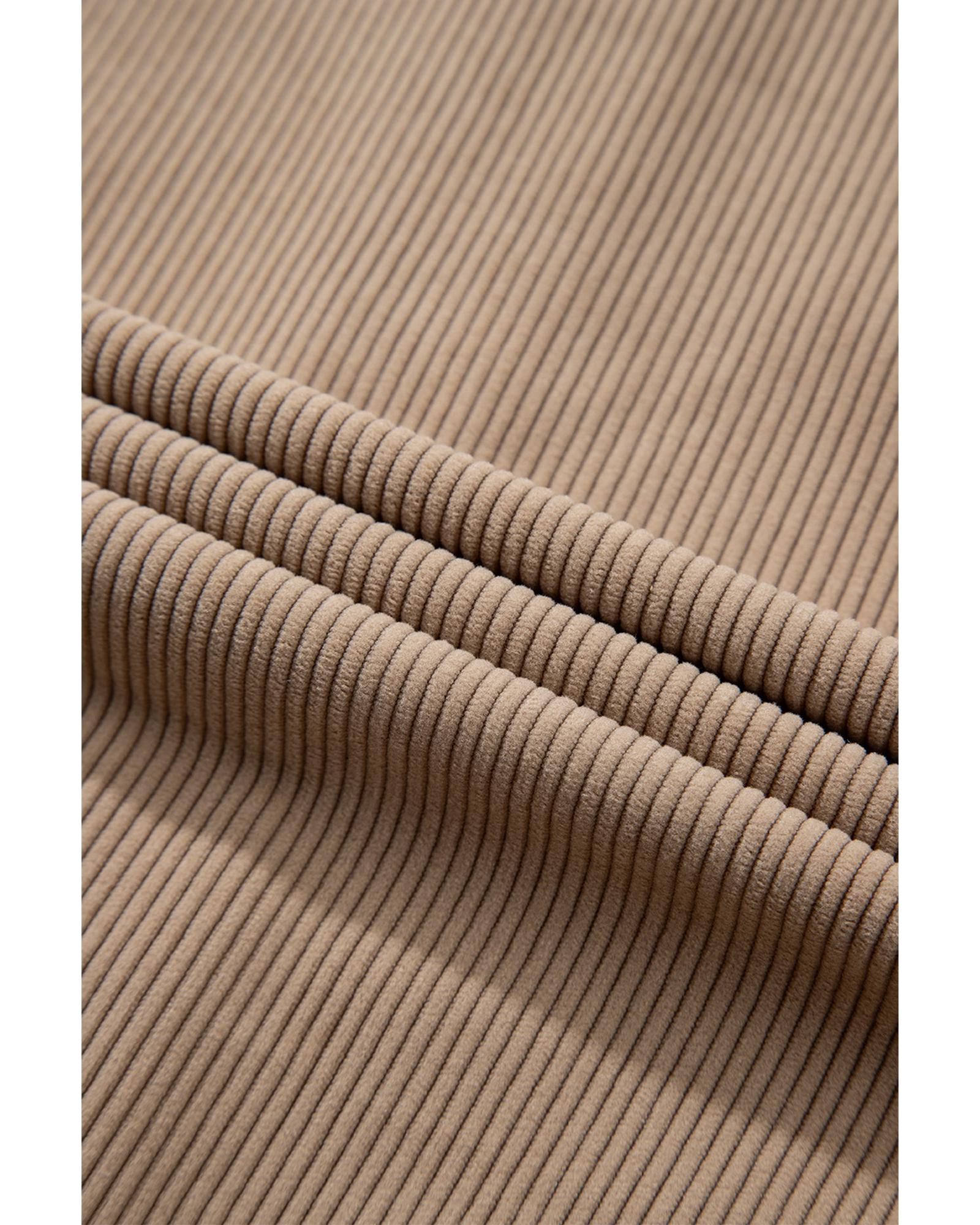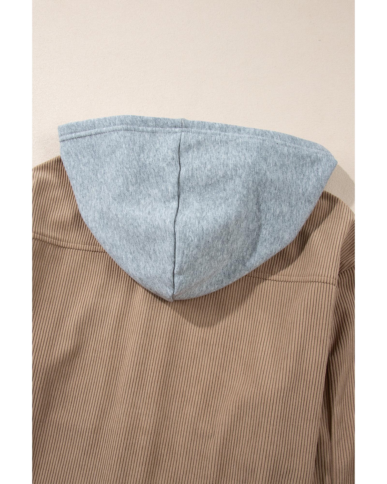 Pale Khaki Hooded Drawstring Pockets Corduroy Shacket – XL