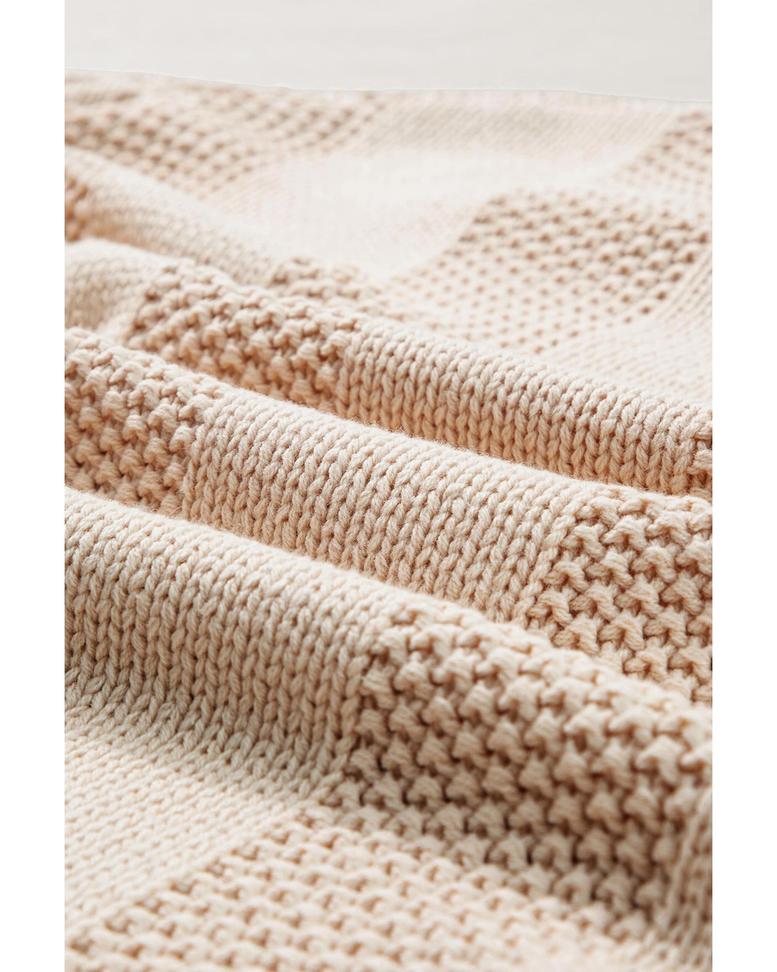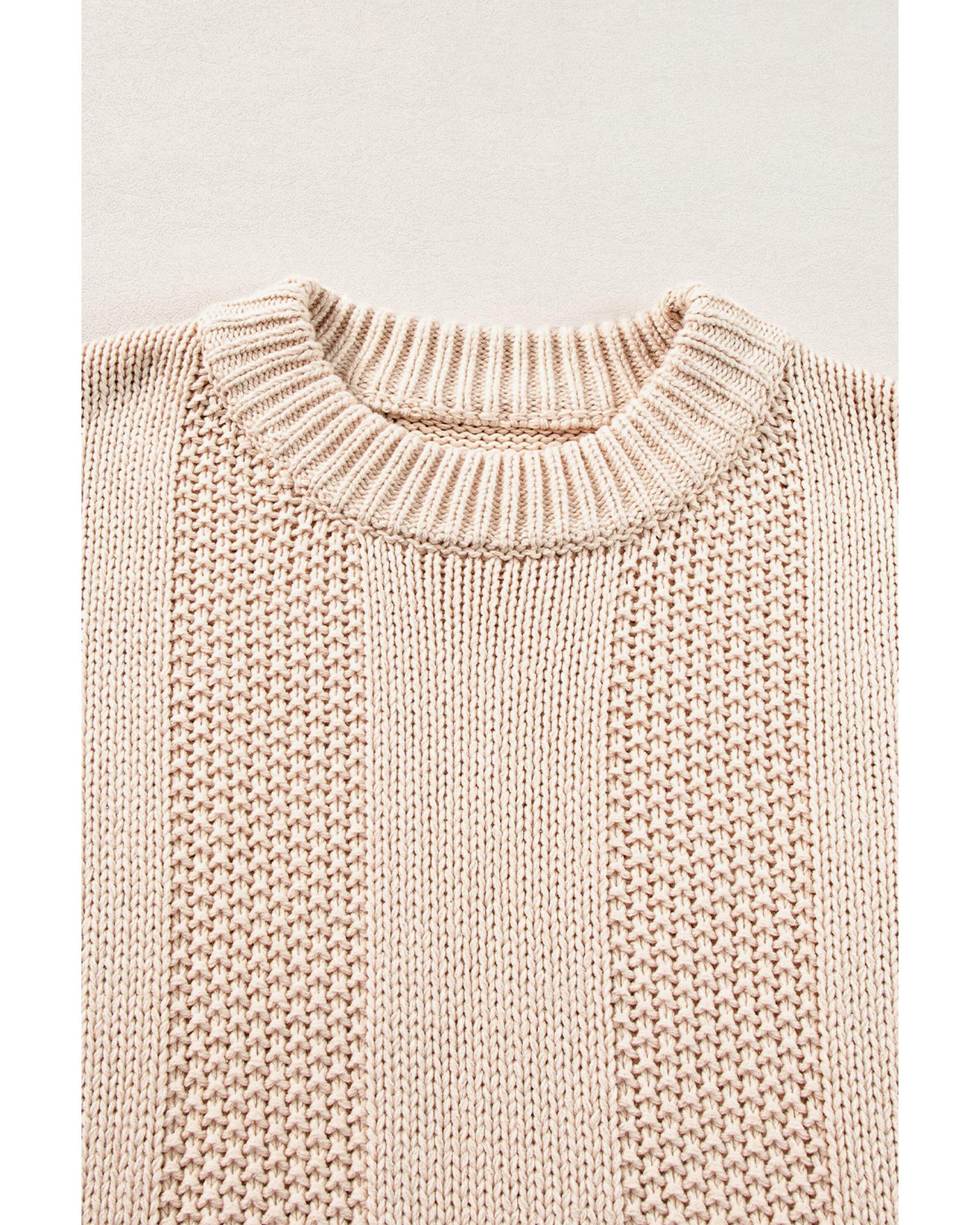 Pale Khaki Solid Color Cable Knit Ribbed Loose Sweater – S