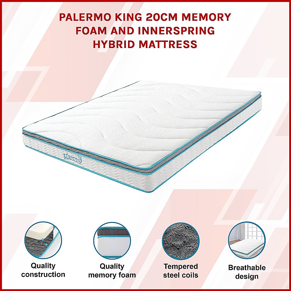 Palermo King 20cm Memory Foam and Innerspring Hybrid Mattress