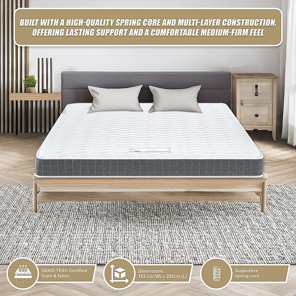 - Durable Supportive Design Built with a high-quality spring core and multi-layer construction, offering lasting support and a comfortable medium-firm feel.