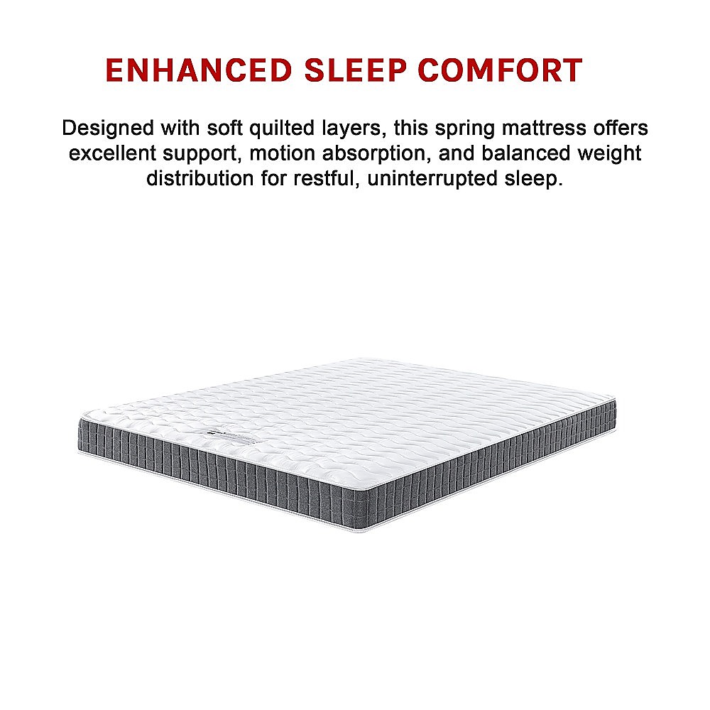 - Enhanced Sleep Comfort Designed with soft quilted layers, this spring mattress offers excellent support, motion absorption, and balanced weight distribution for restful, uninterrupted sleep.