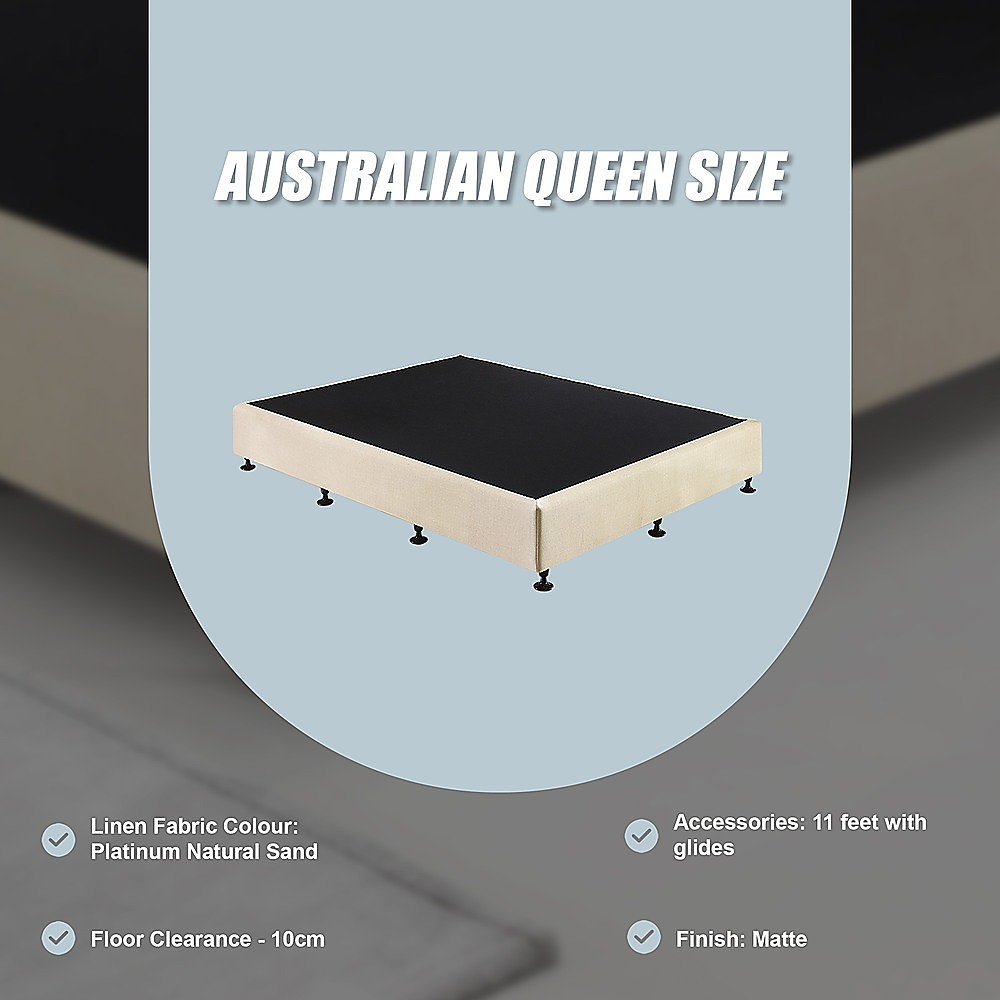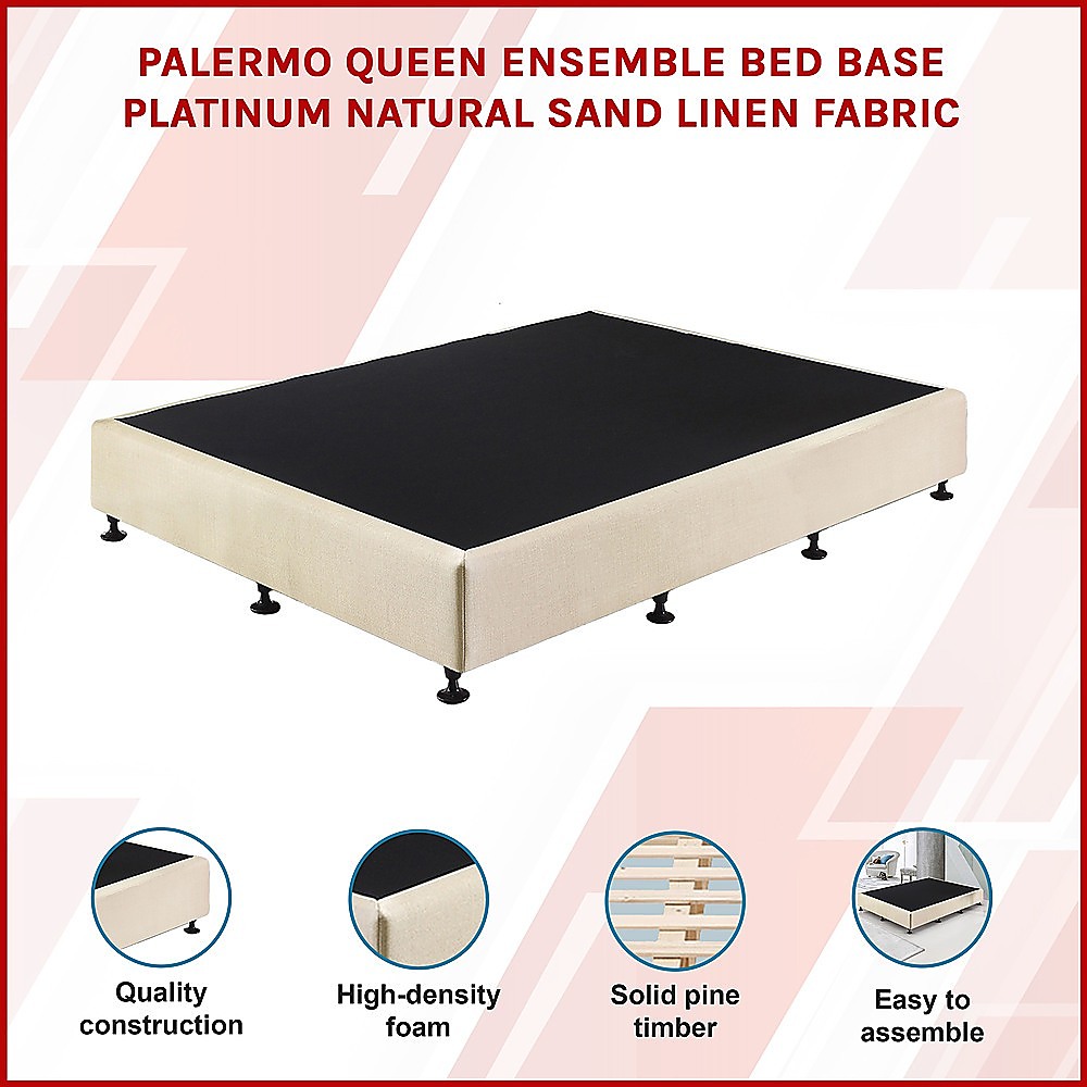 Palermo Queen Ensemble Bed Base Platinum Natural Sand Linen Fabric