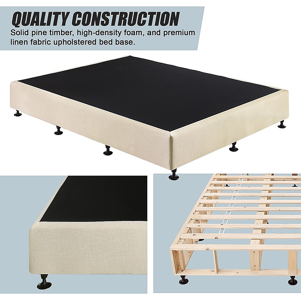 • Materials: Solid pine timber, high-density foam, and premium linen fabric upholstered bed base