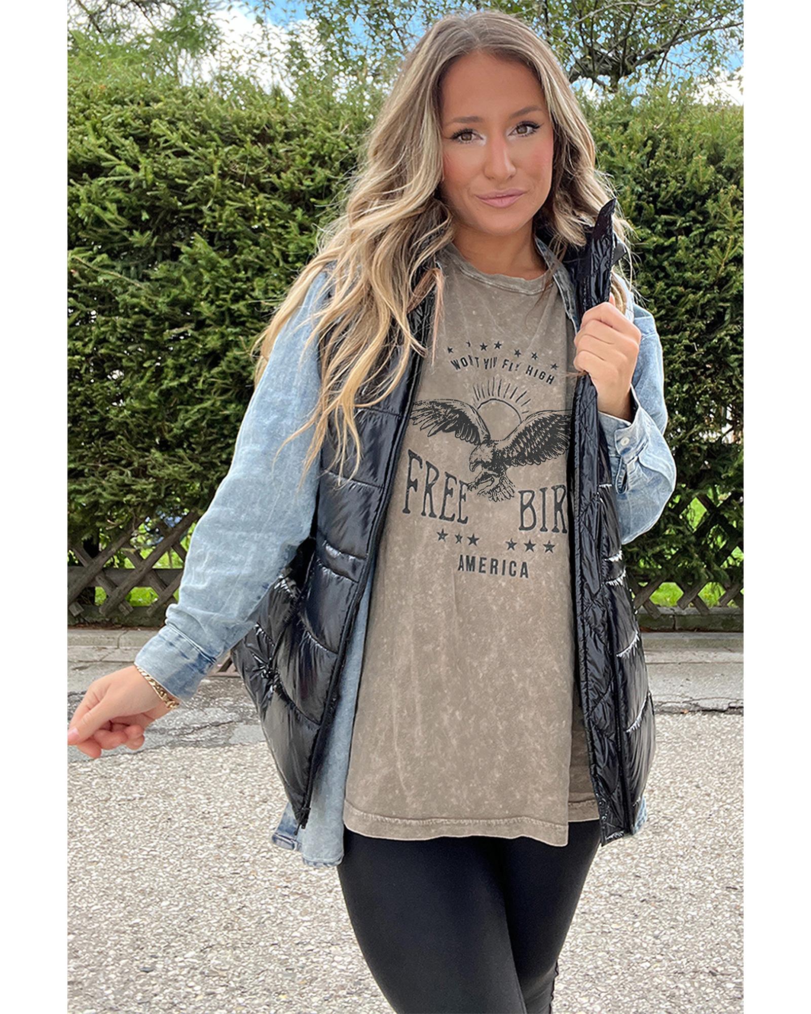 Parchment AMERICA FREE BIRD Vintage Graphic Mineral Washed Tee – S