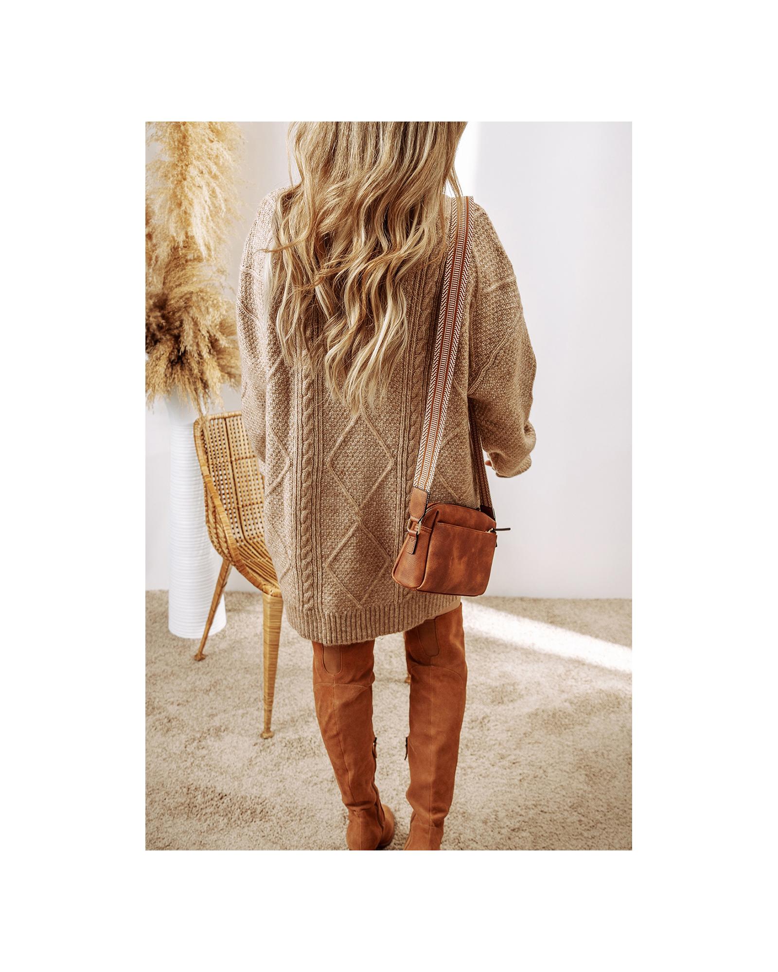 Parchment Cable Knit Drop Shoulder Loose Fit Sweater Dress – L