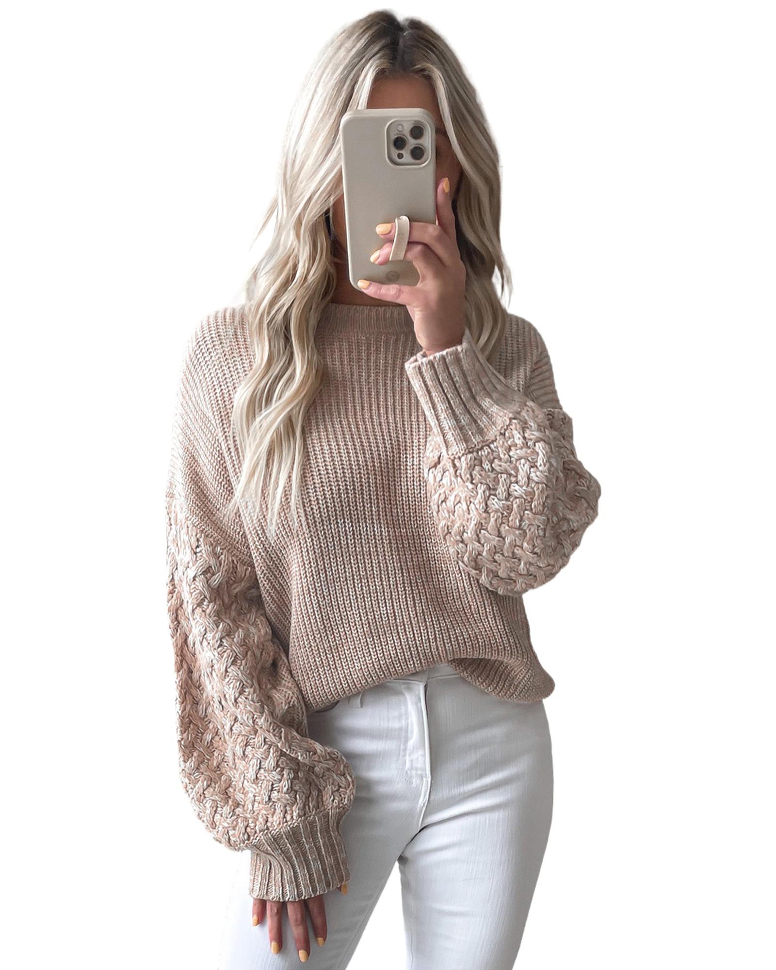 Parchment Cable Knit Sleeve Drop Shoulder Sweater – M