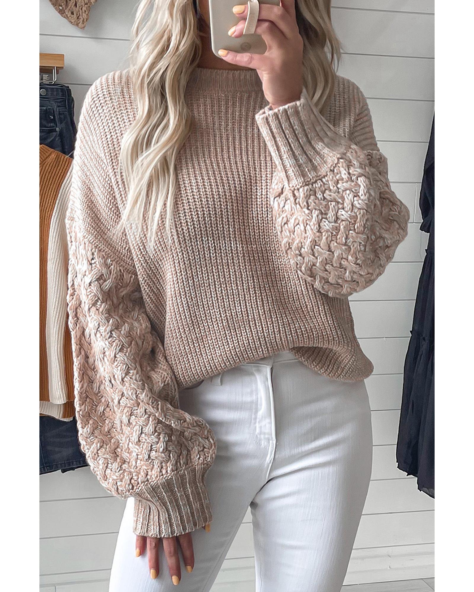 Parchment Cable Knit Sleeve Drop Shoulder Sweater – XL