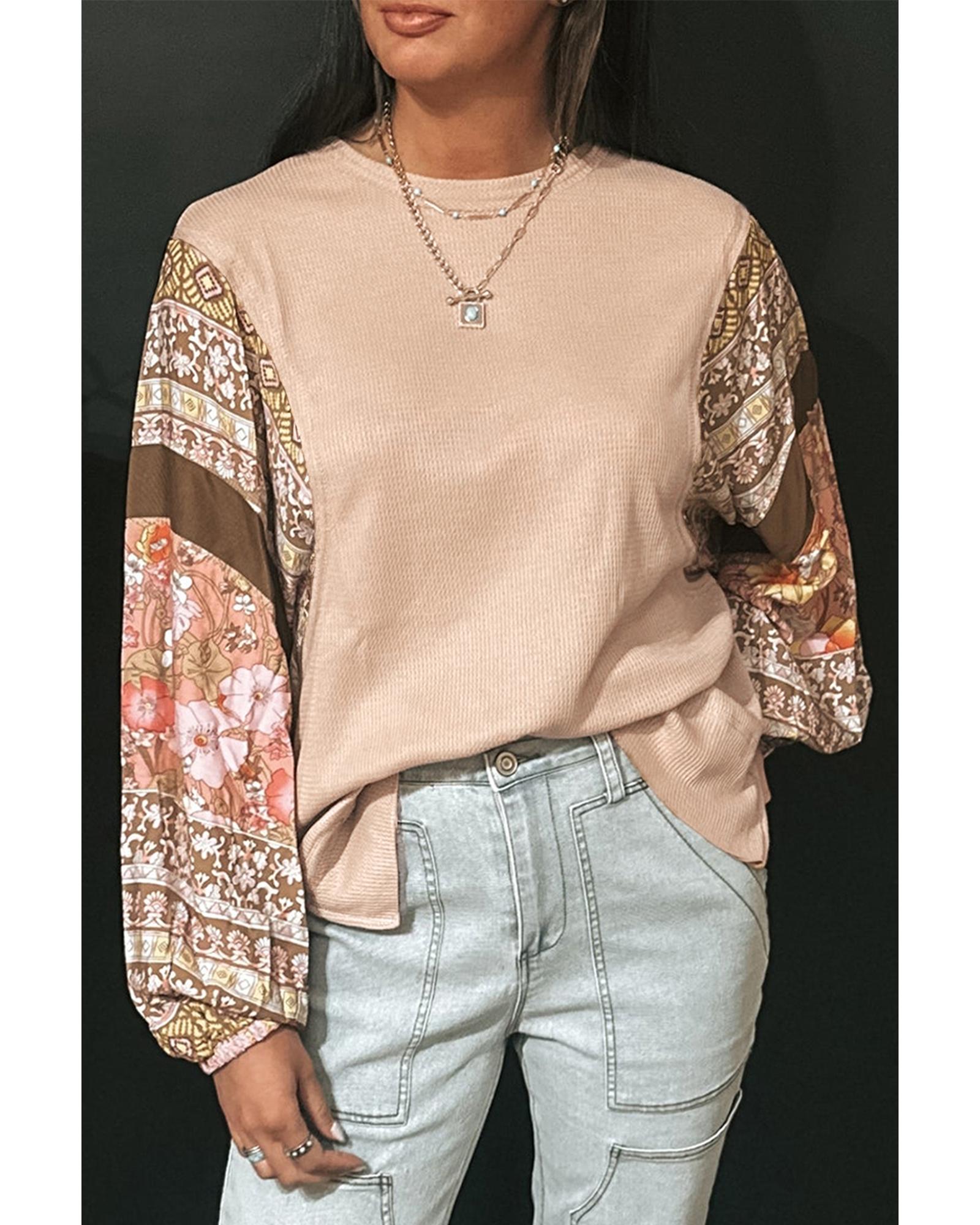 • Unique contrast floral patchwork puff sleeve