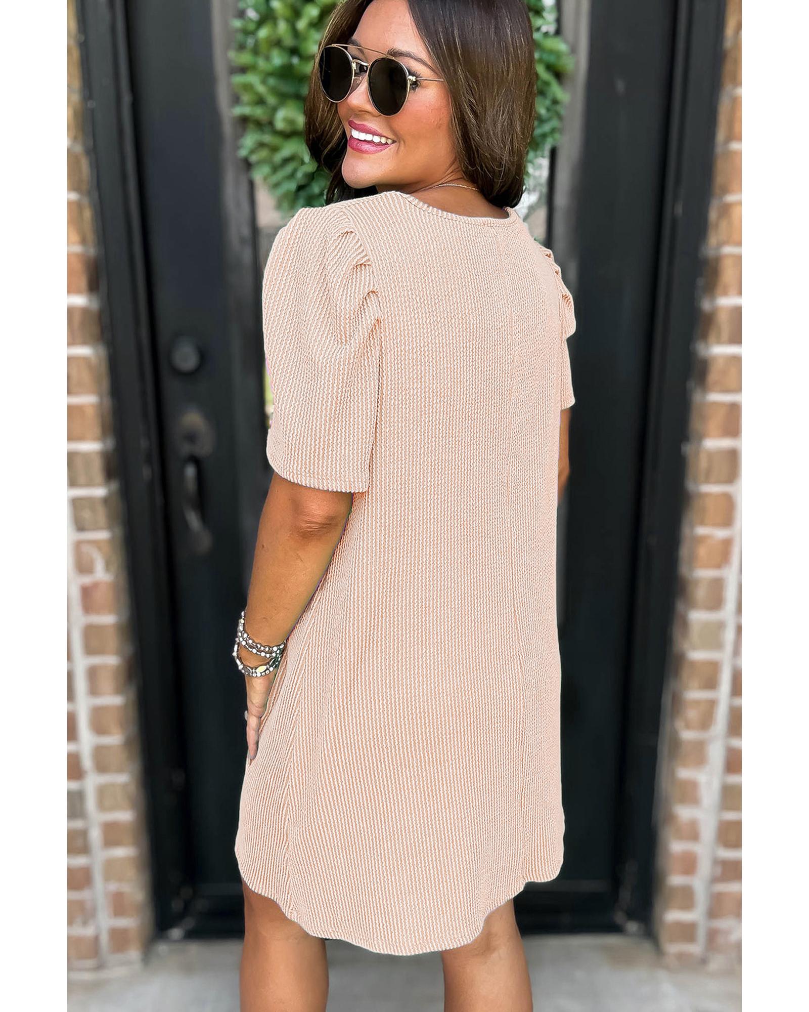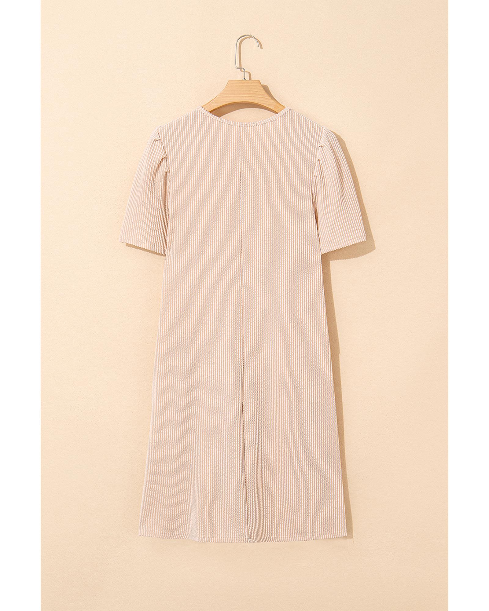 Parchment Corded Knit Crew Neck Puff Sleeve Shift Mini Dress – S