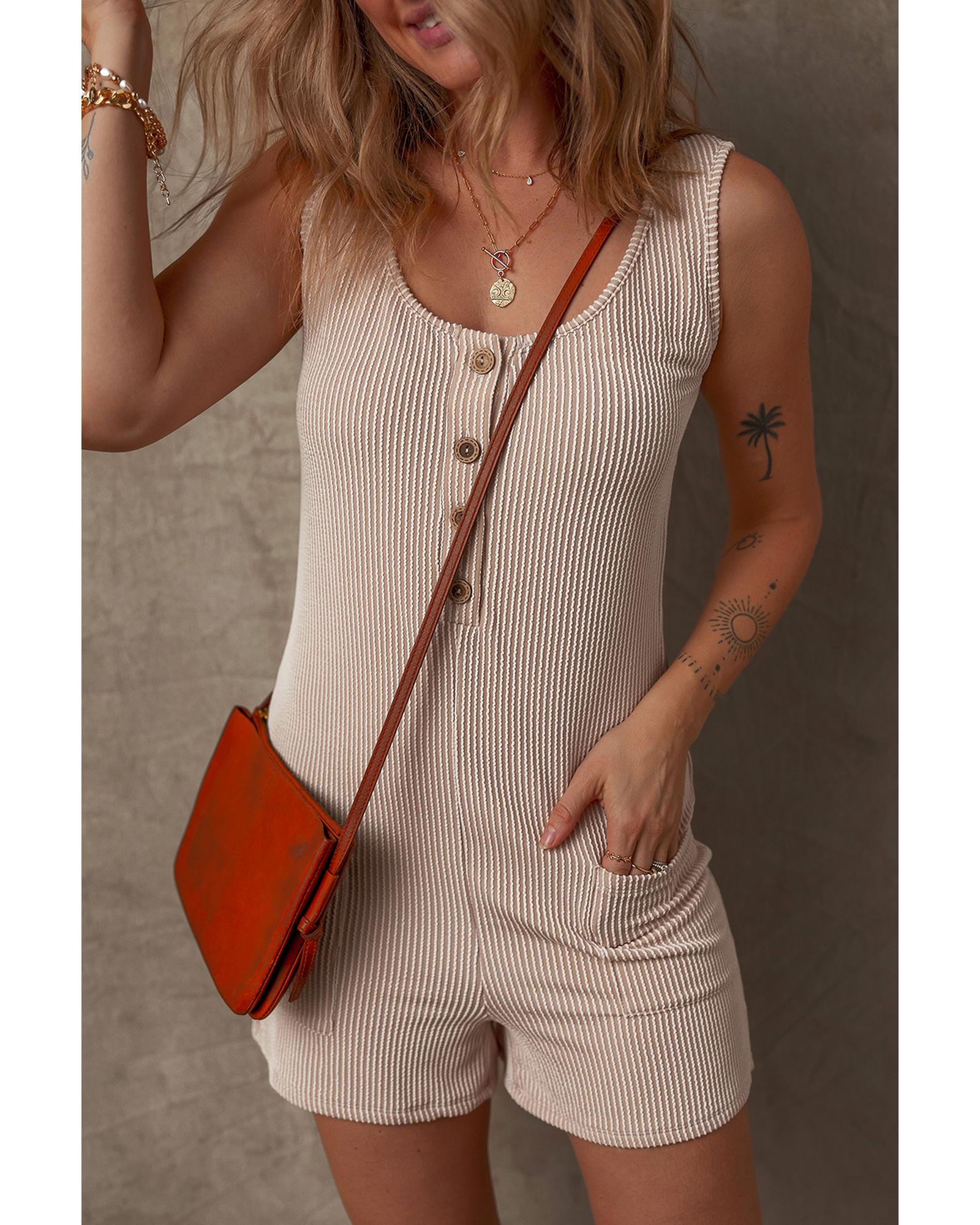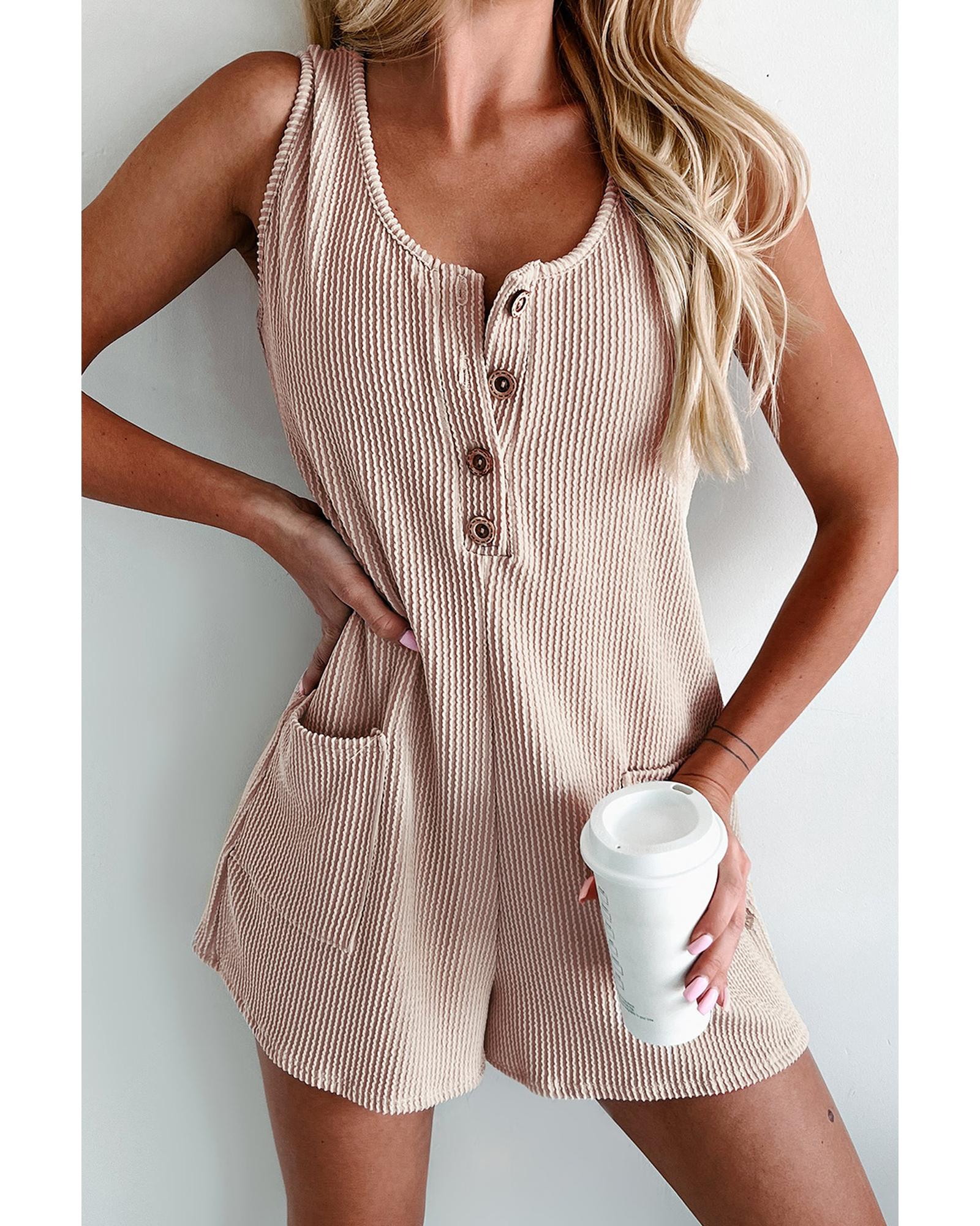 Parchment Corded Knit Side Pockets Buttoned Sleeveless Romper – L