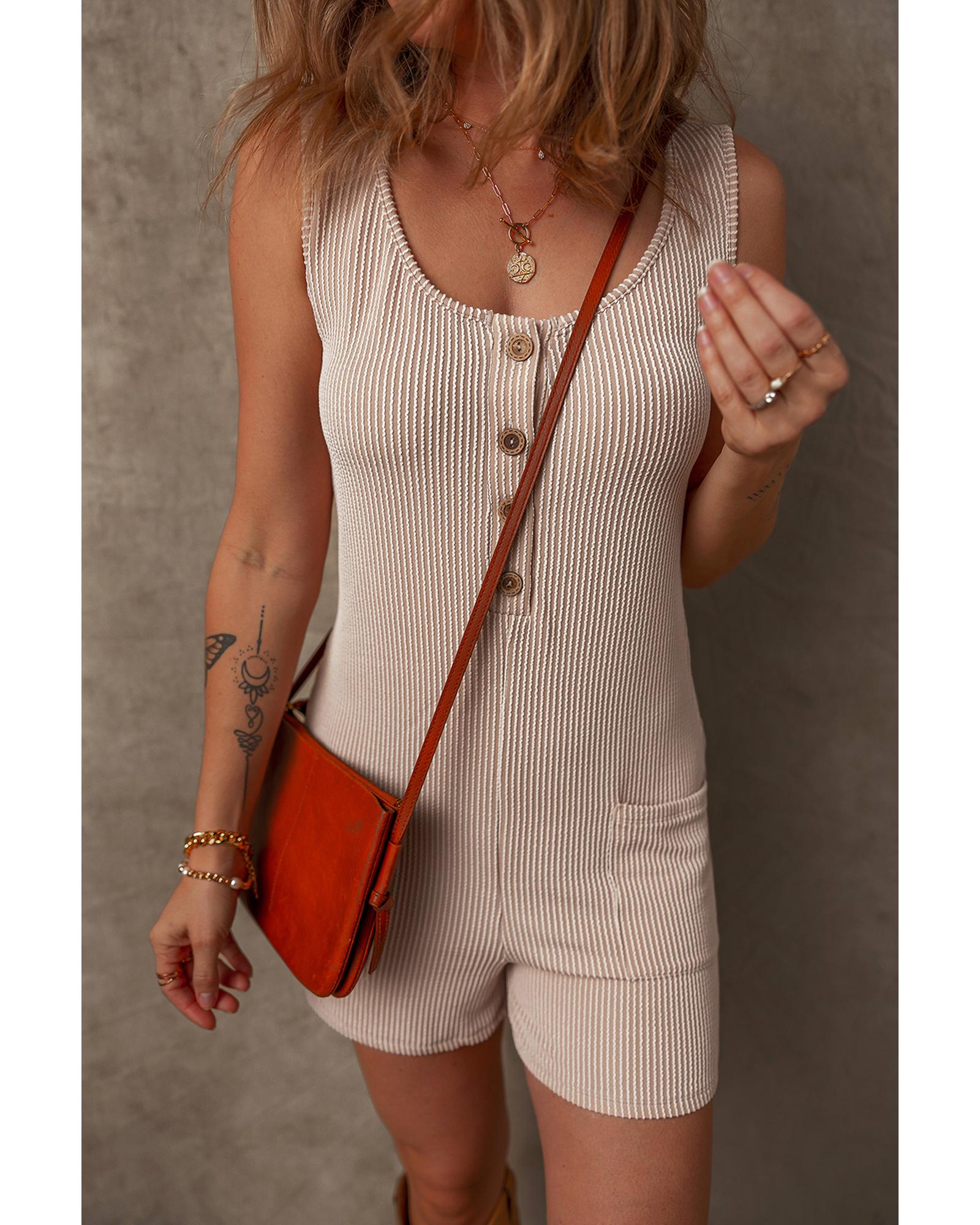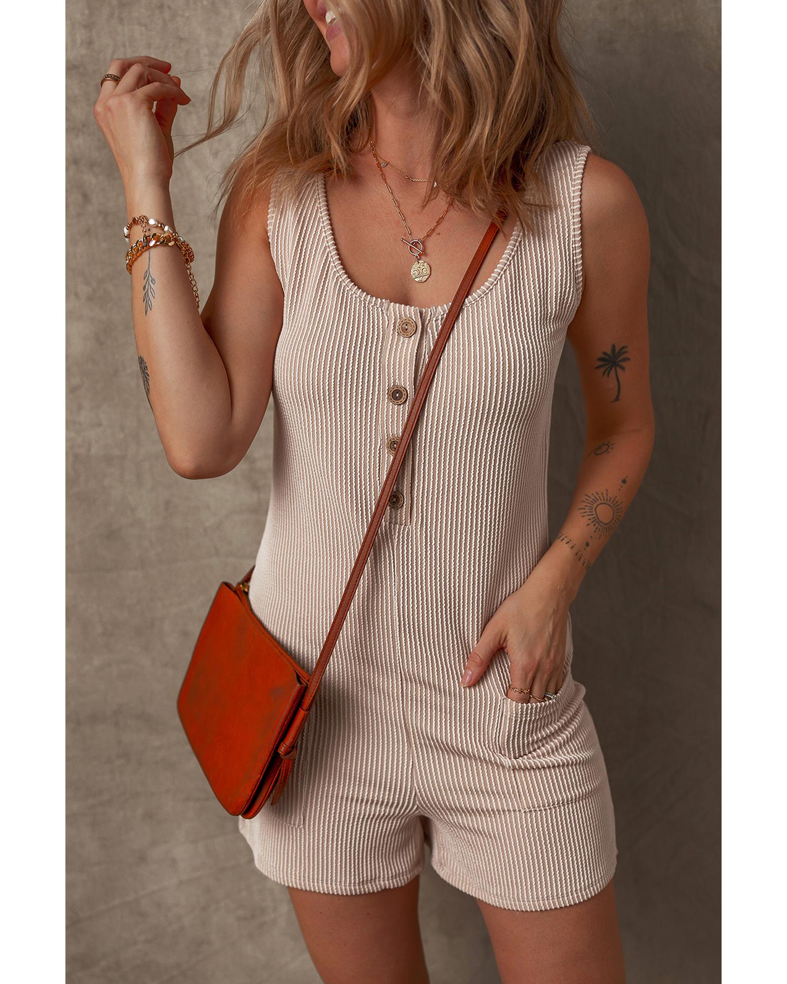 Parchment Corded Knit Side Pockets Buttoned Sleeveless Romper – XL