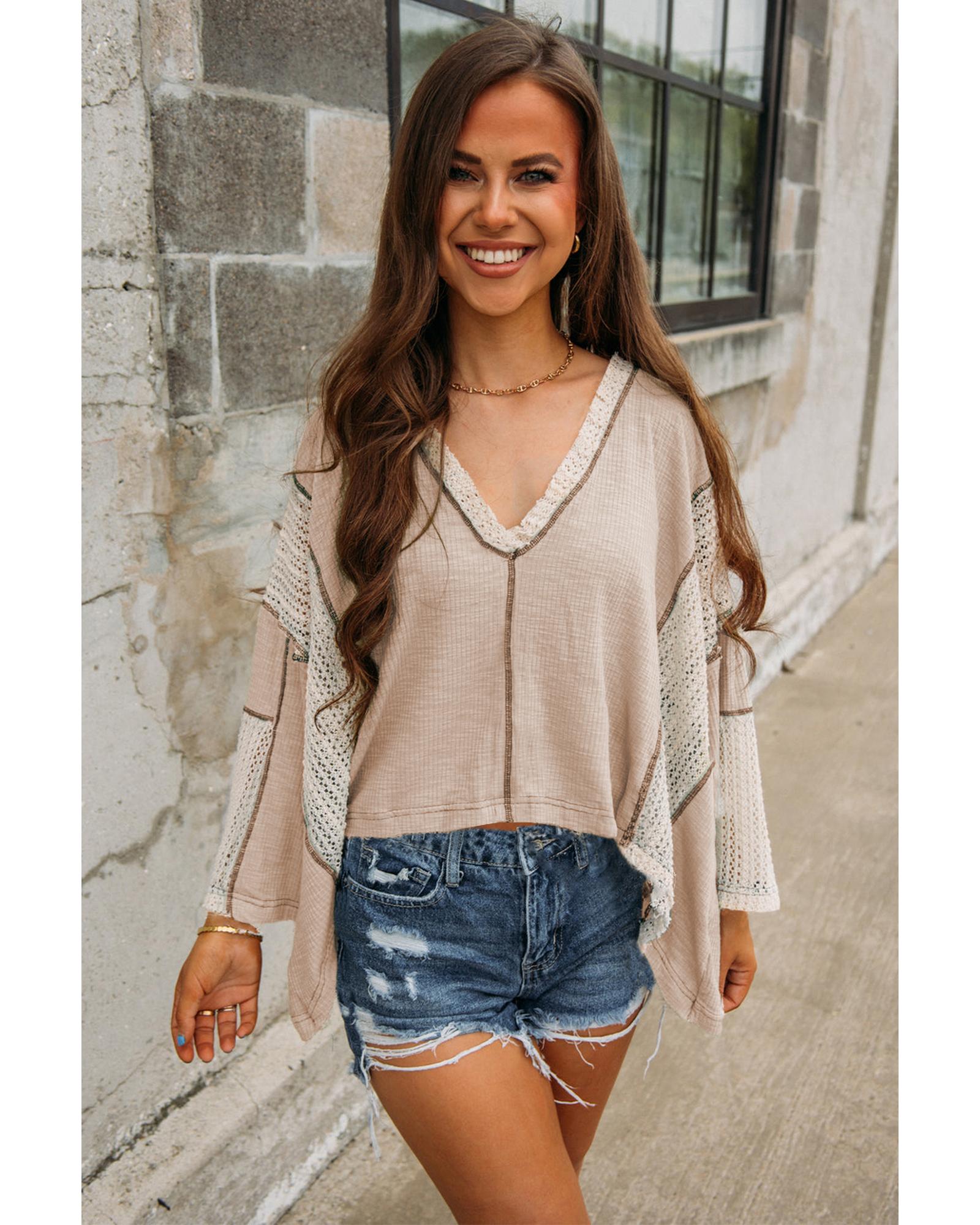 Parchment Crochet Detail Exposed Seam High Low Loose Top – XL