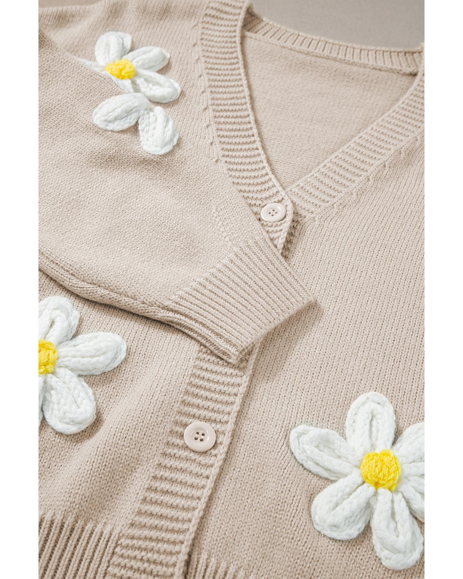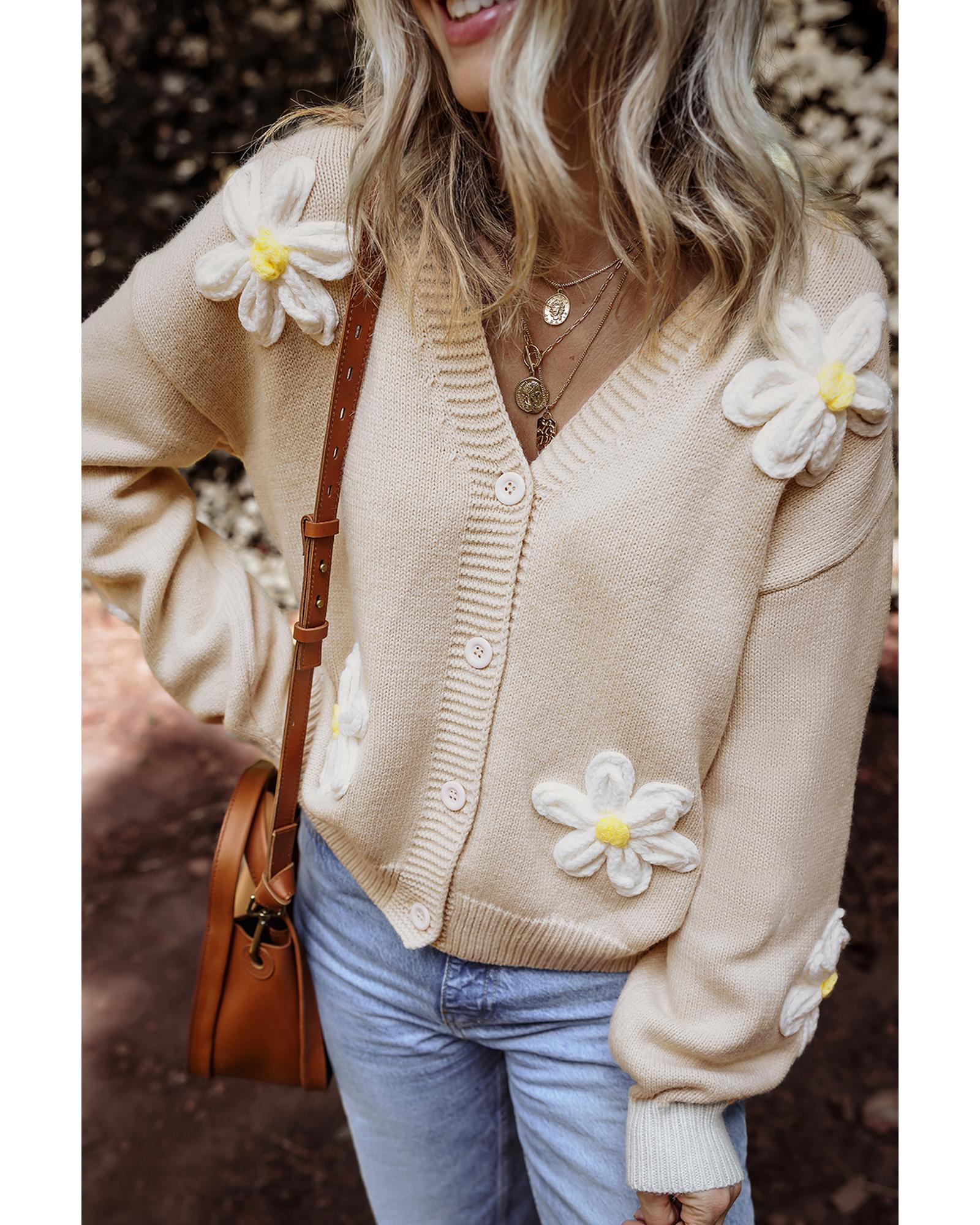 Parchment Elegant Flower Decor Button Front Cardigan – M