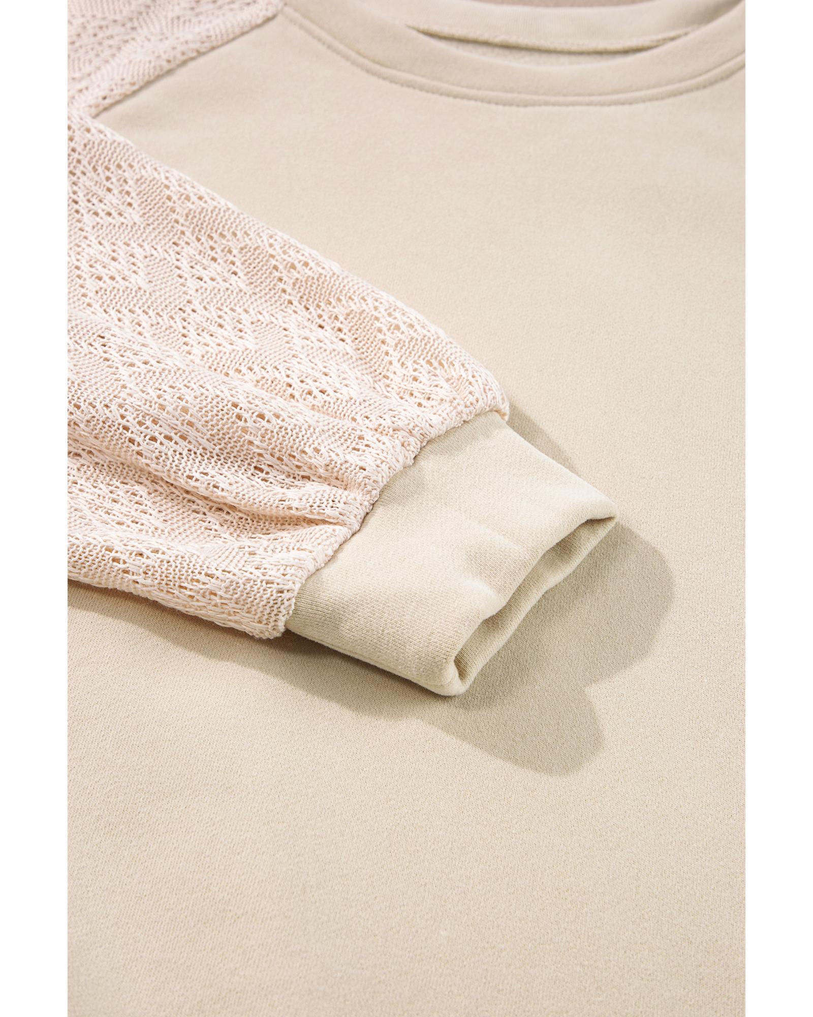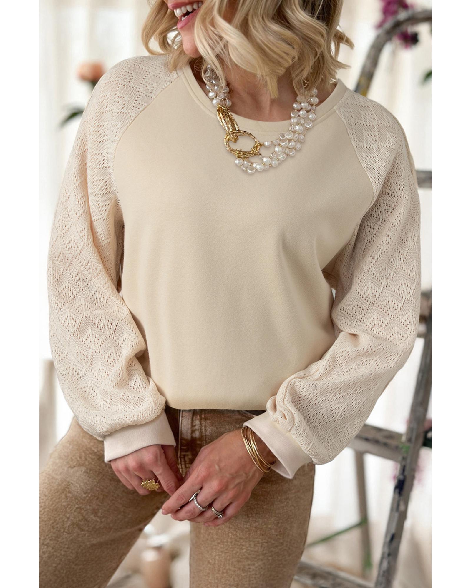 Parchment Eyelet Knit Patchwork Raglan Sleeve Pullover Top – M