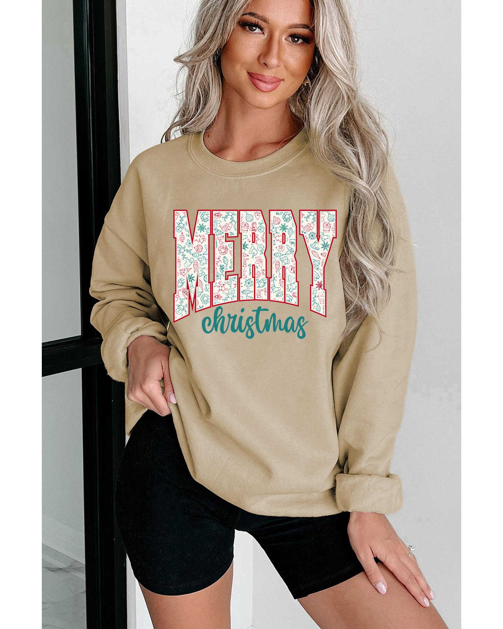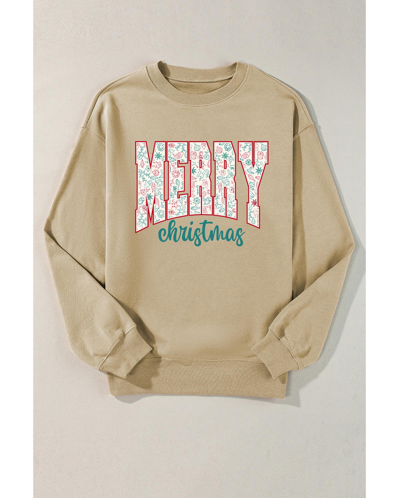 - Parchment Festive Element Printed MERRY Christmas Graphic Sweatshirt