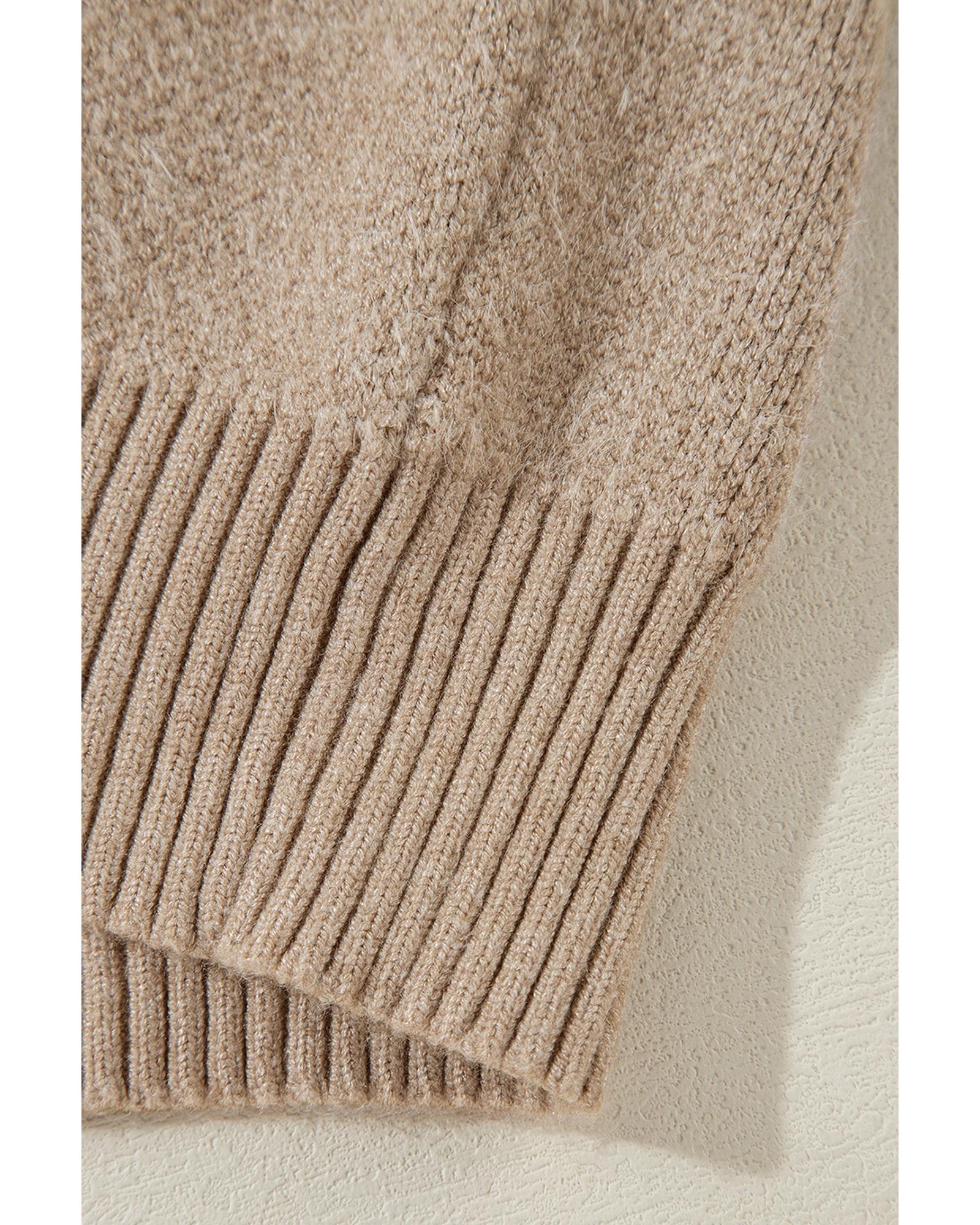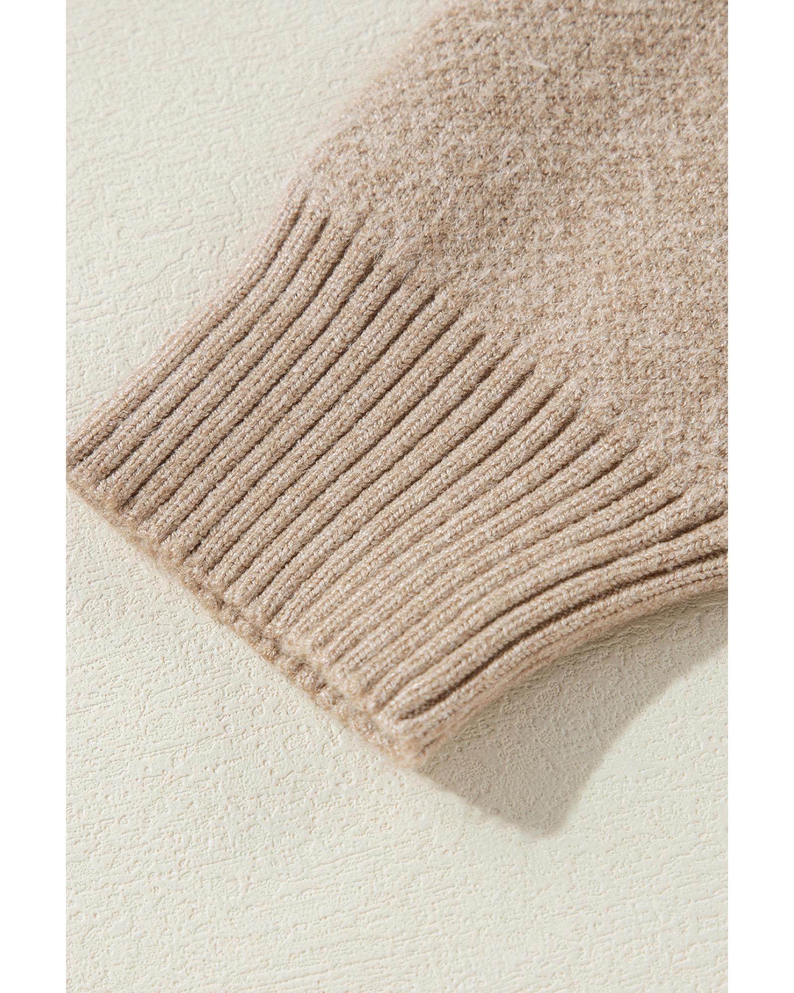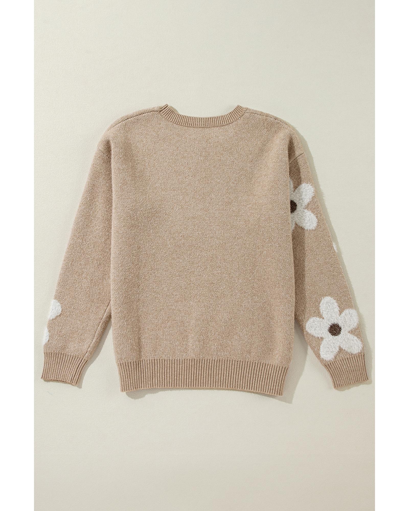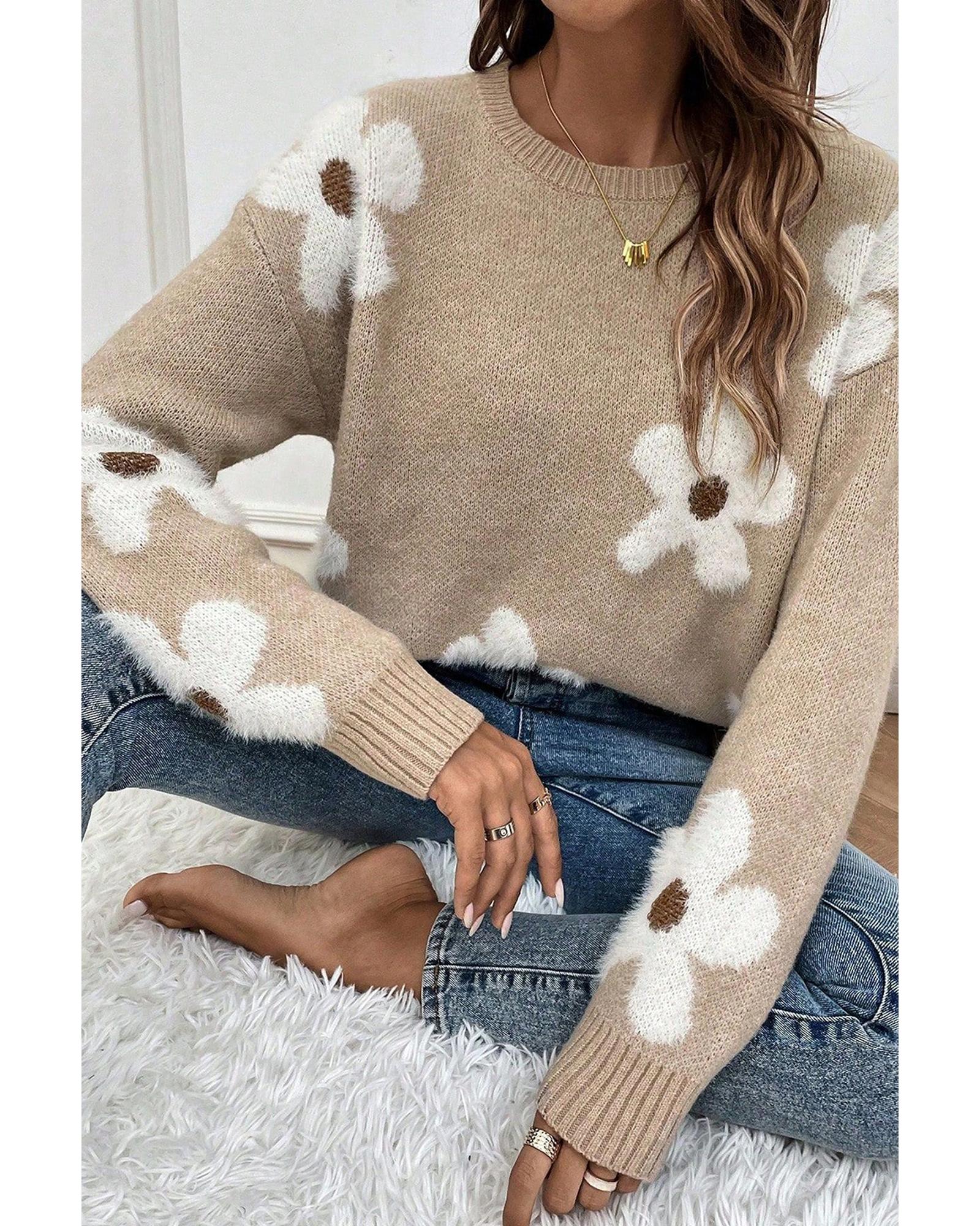 - Parchment Flower Pattern Ribbed Trim Crew Neck Sweater