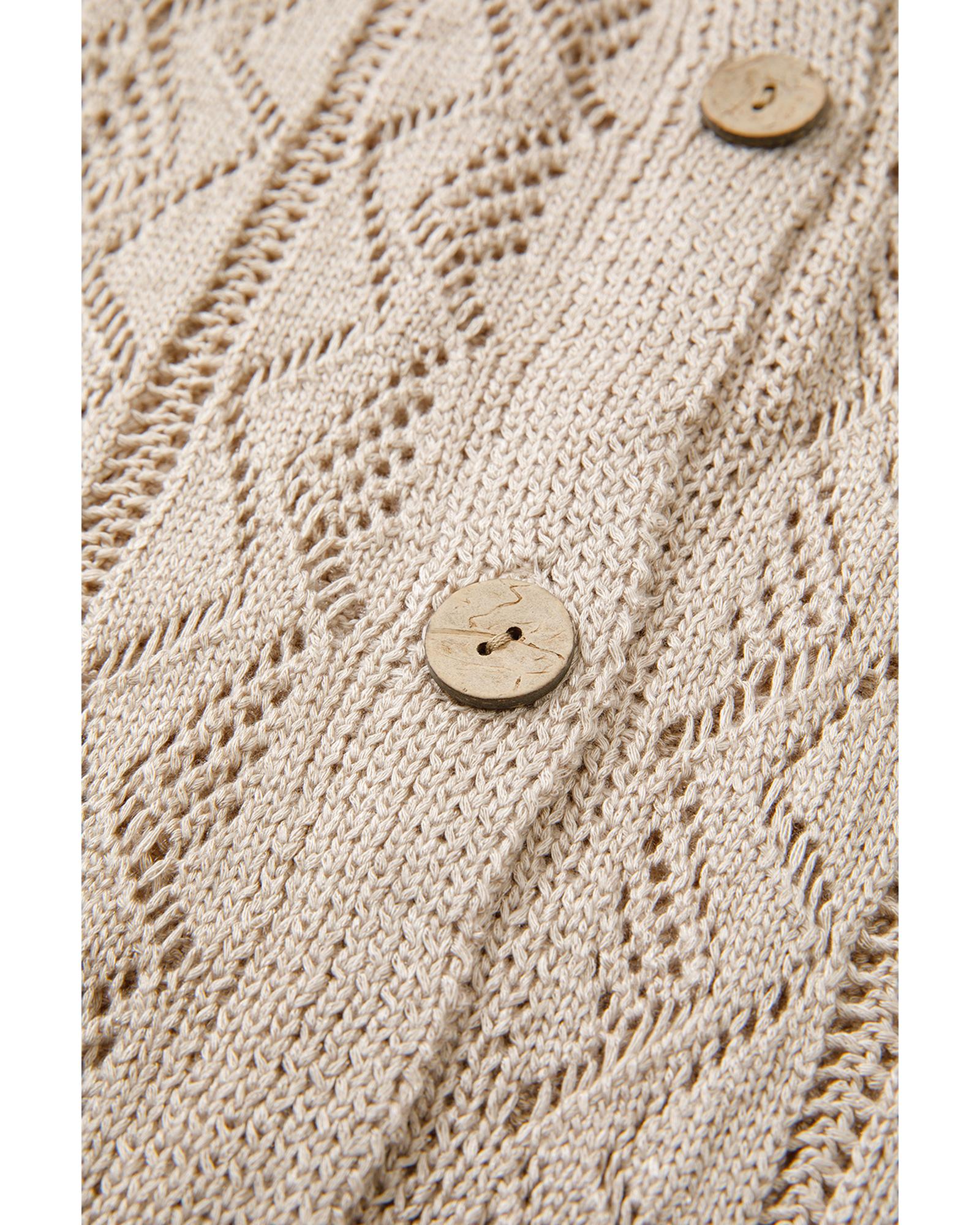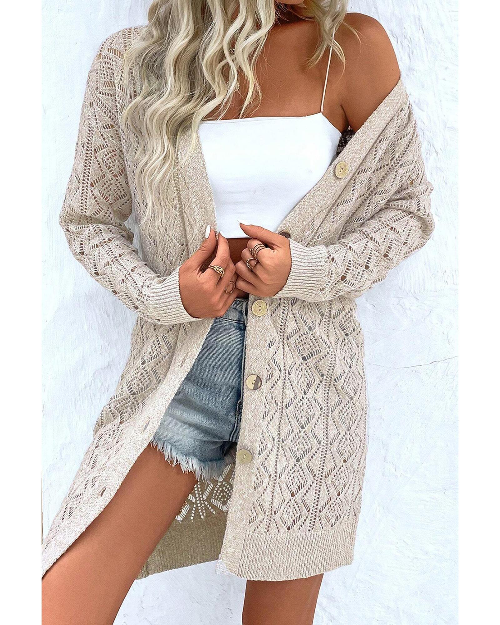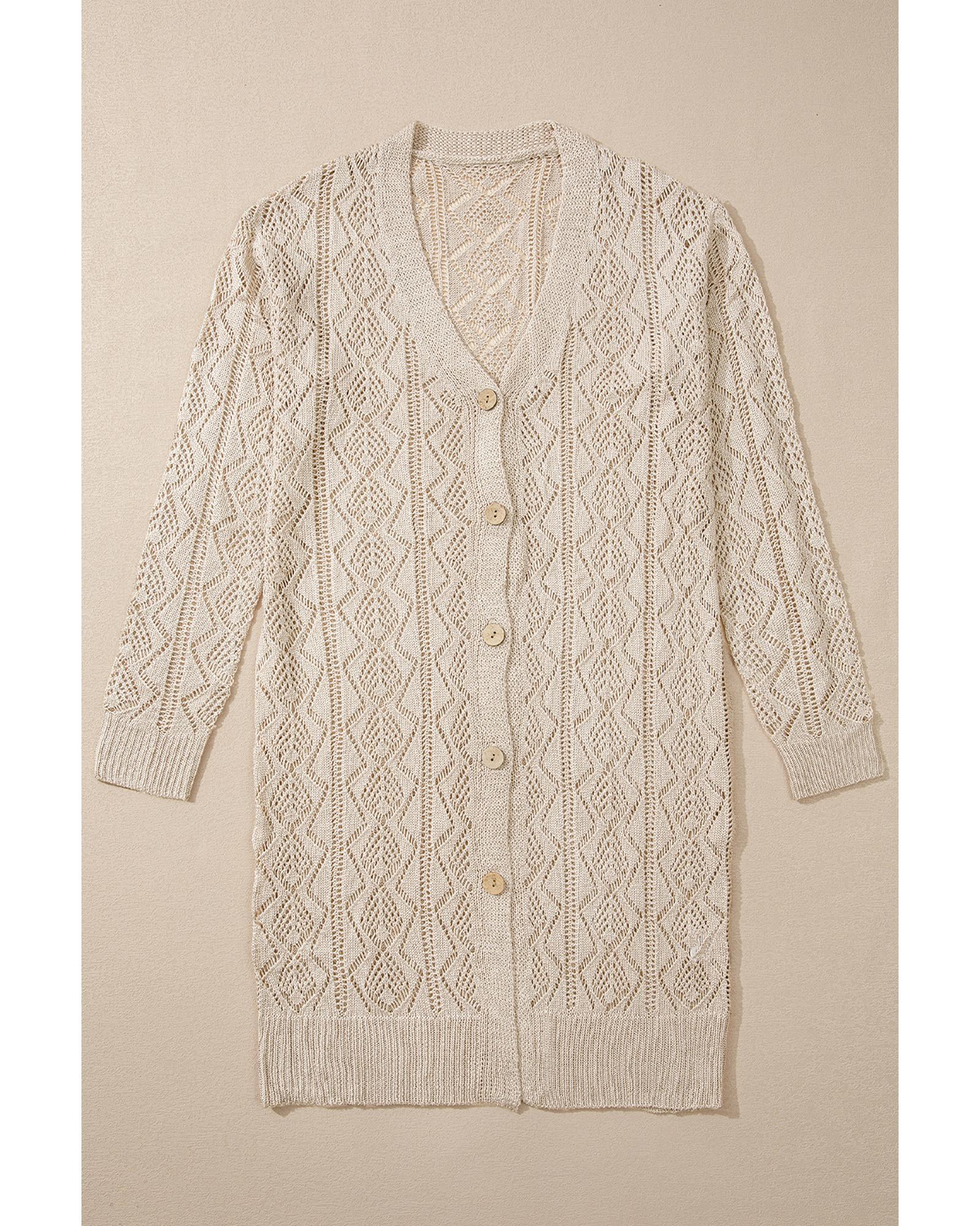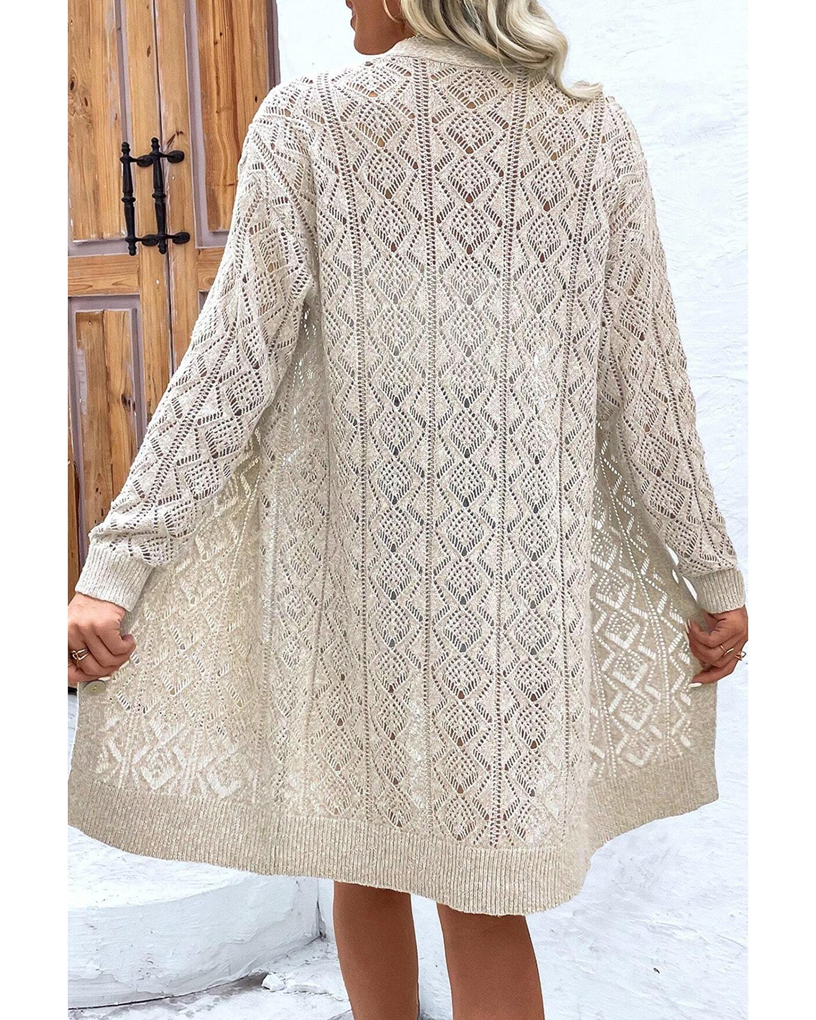 Parchment Hollow Out Buttons Front Long Cardigan – XL