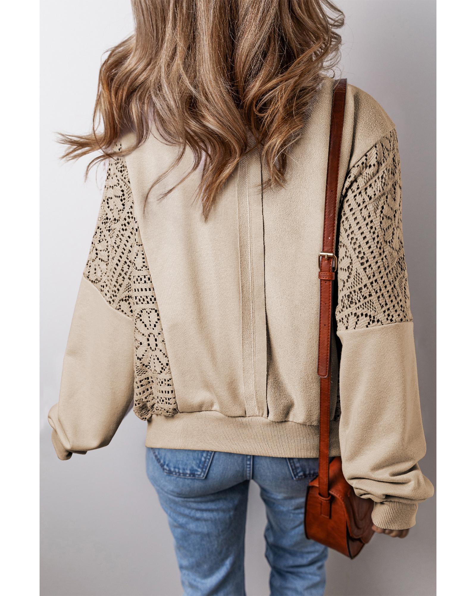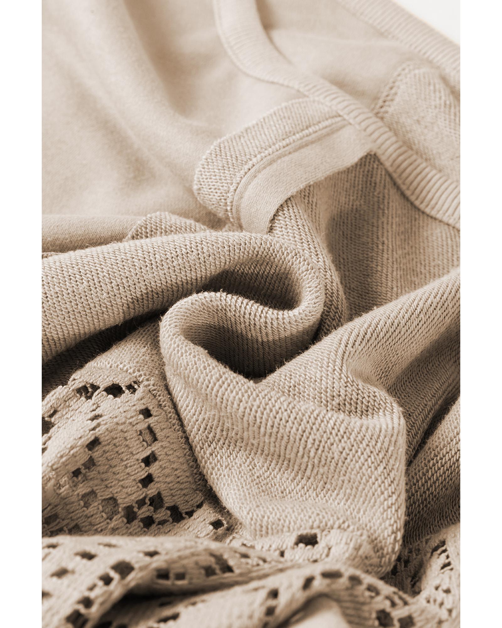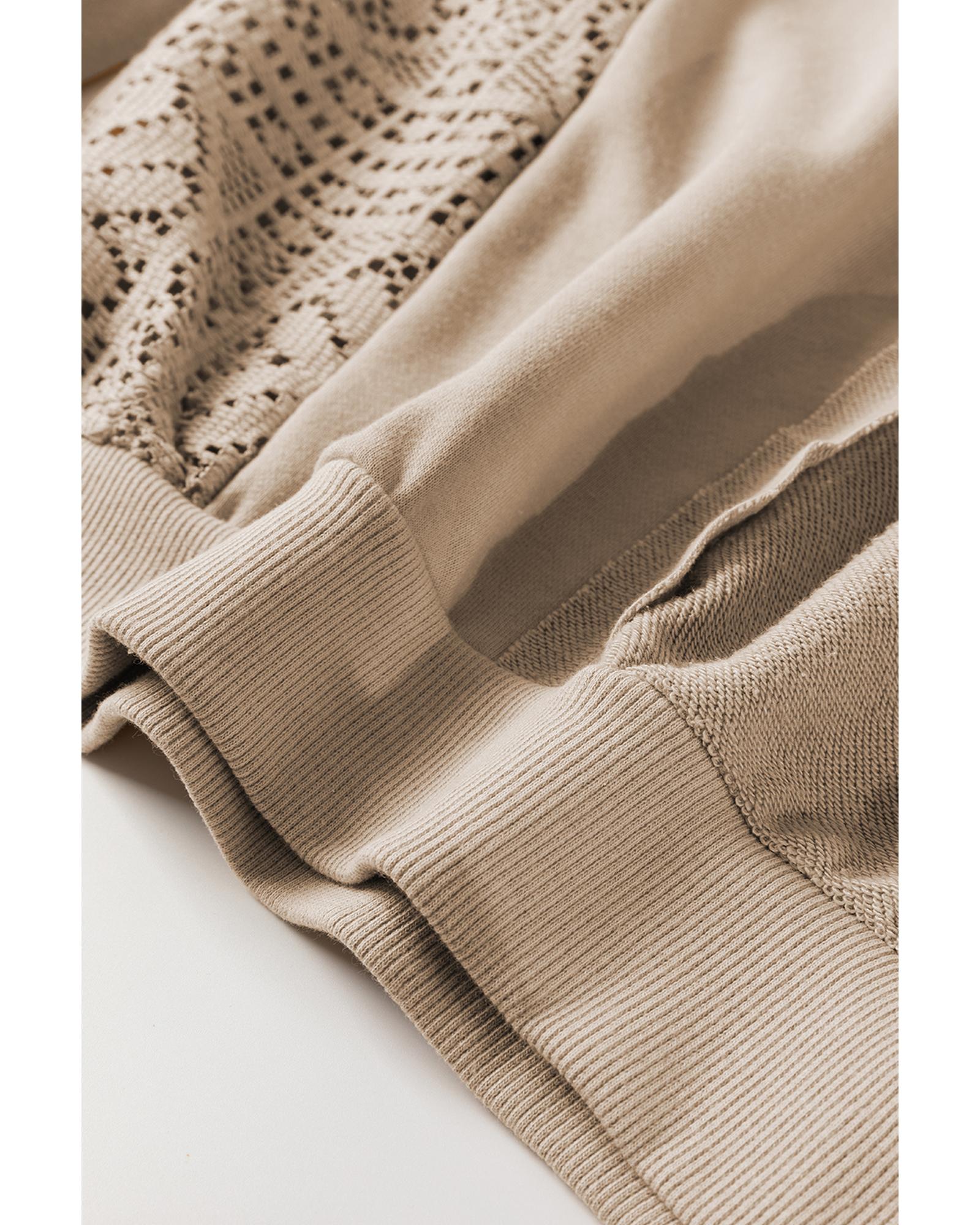 - Parchment Knit Crochet Exposed Seam Ribbed Trim Sweatshirt