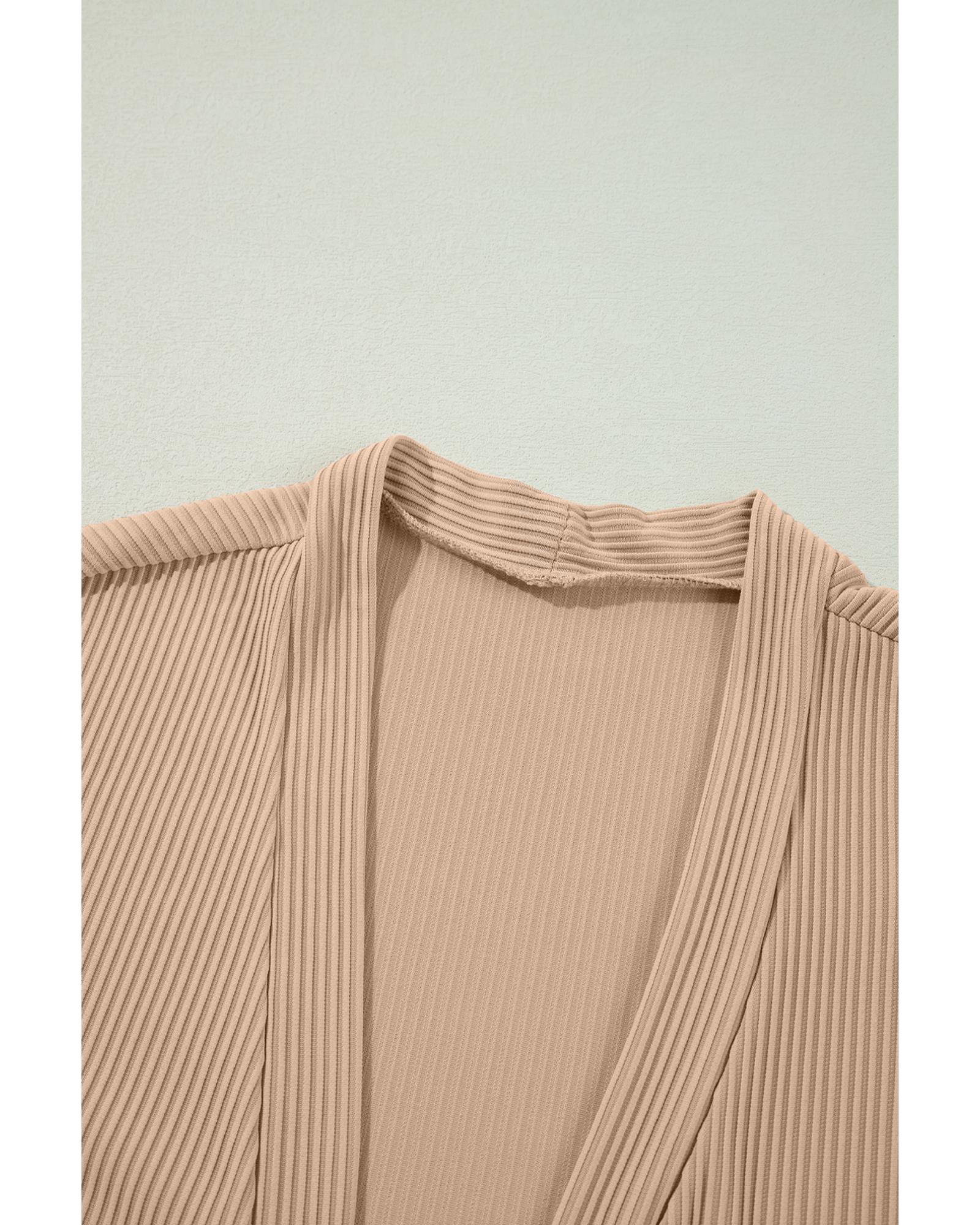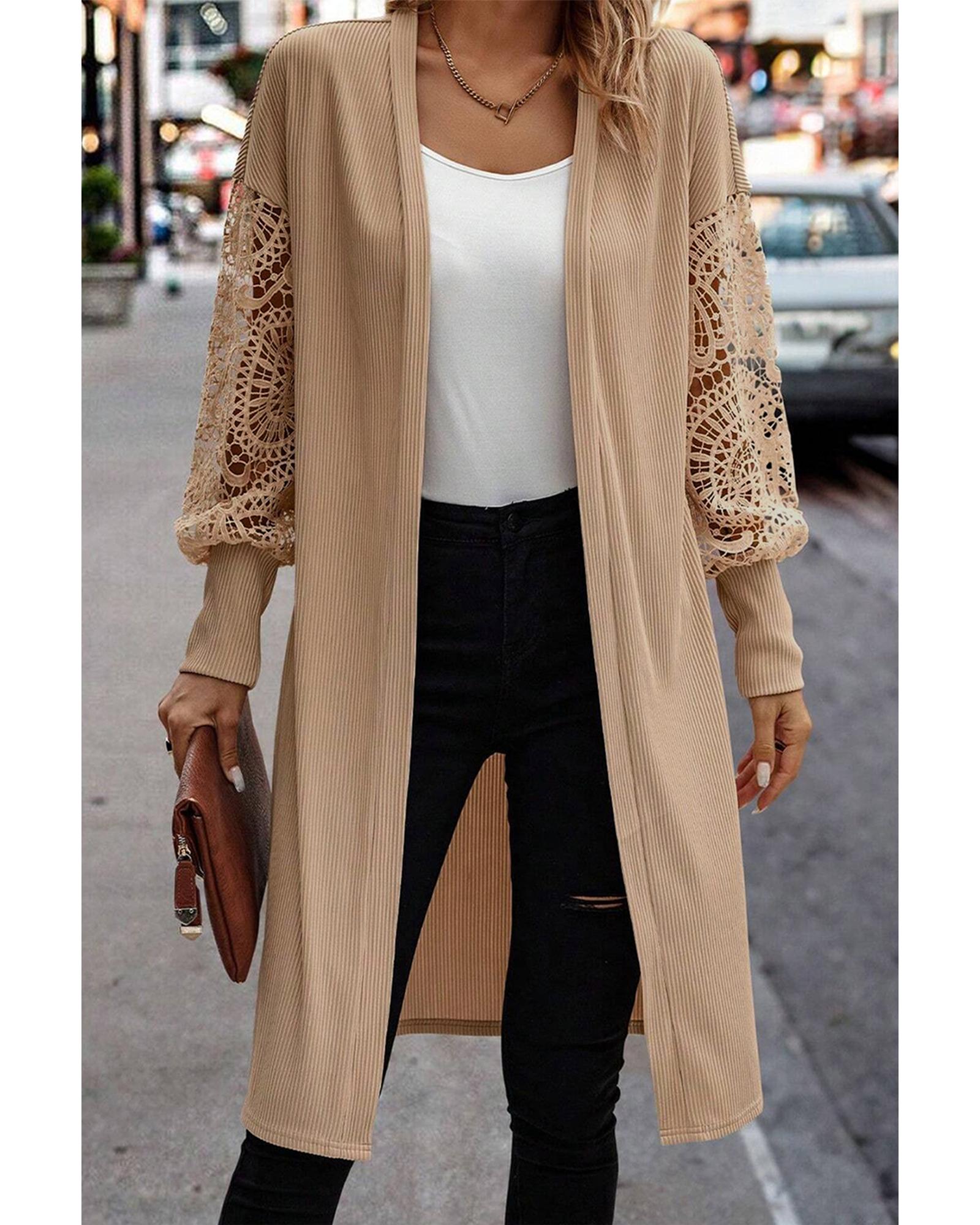 Parchment Lace Patchwork Ribbed Knit Open Front Duster Cardigan – S