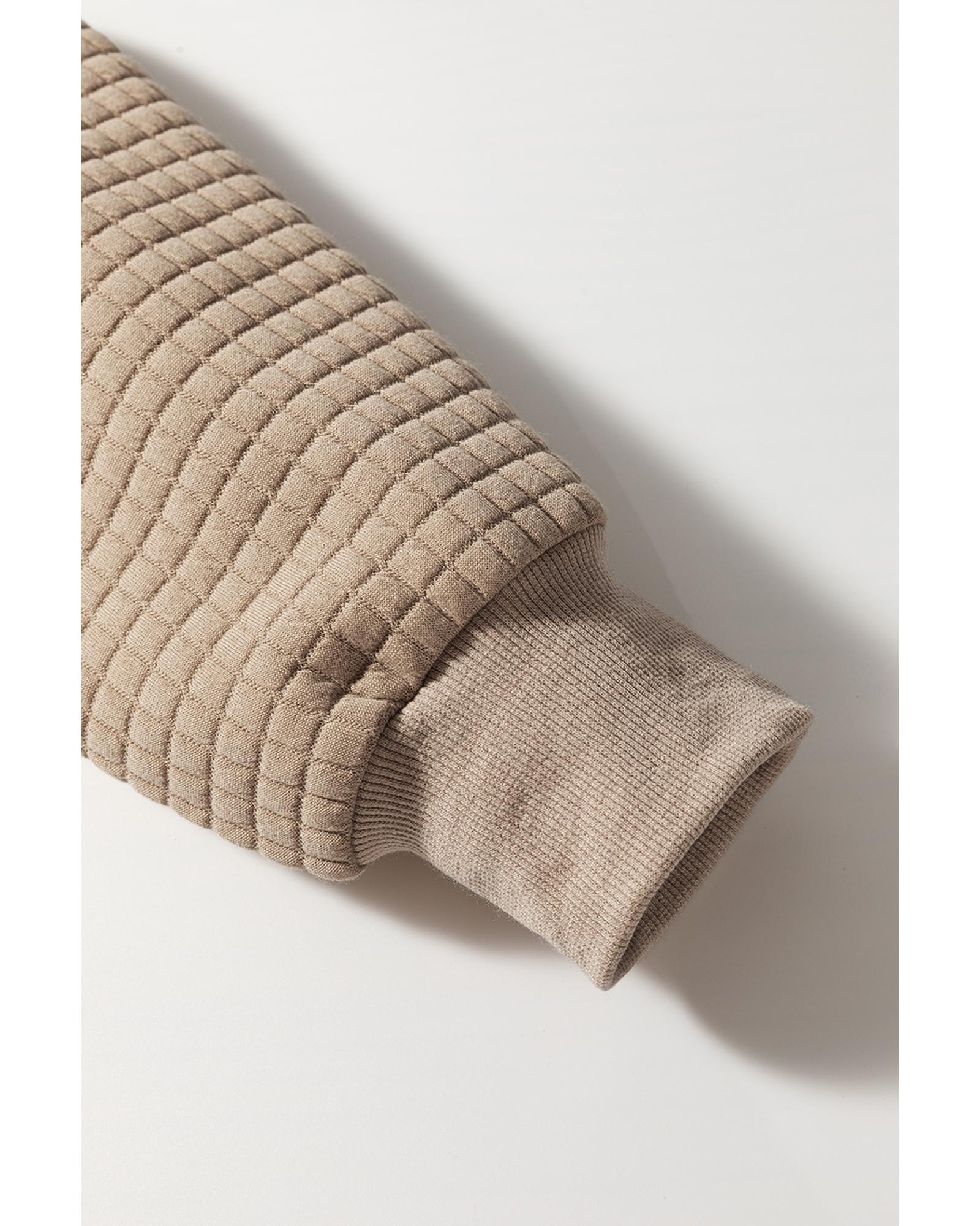 Apricot Textured Wavy Round Neck Long Sleeve Top - M