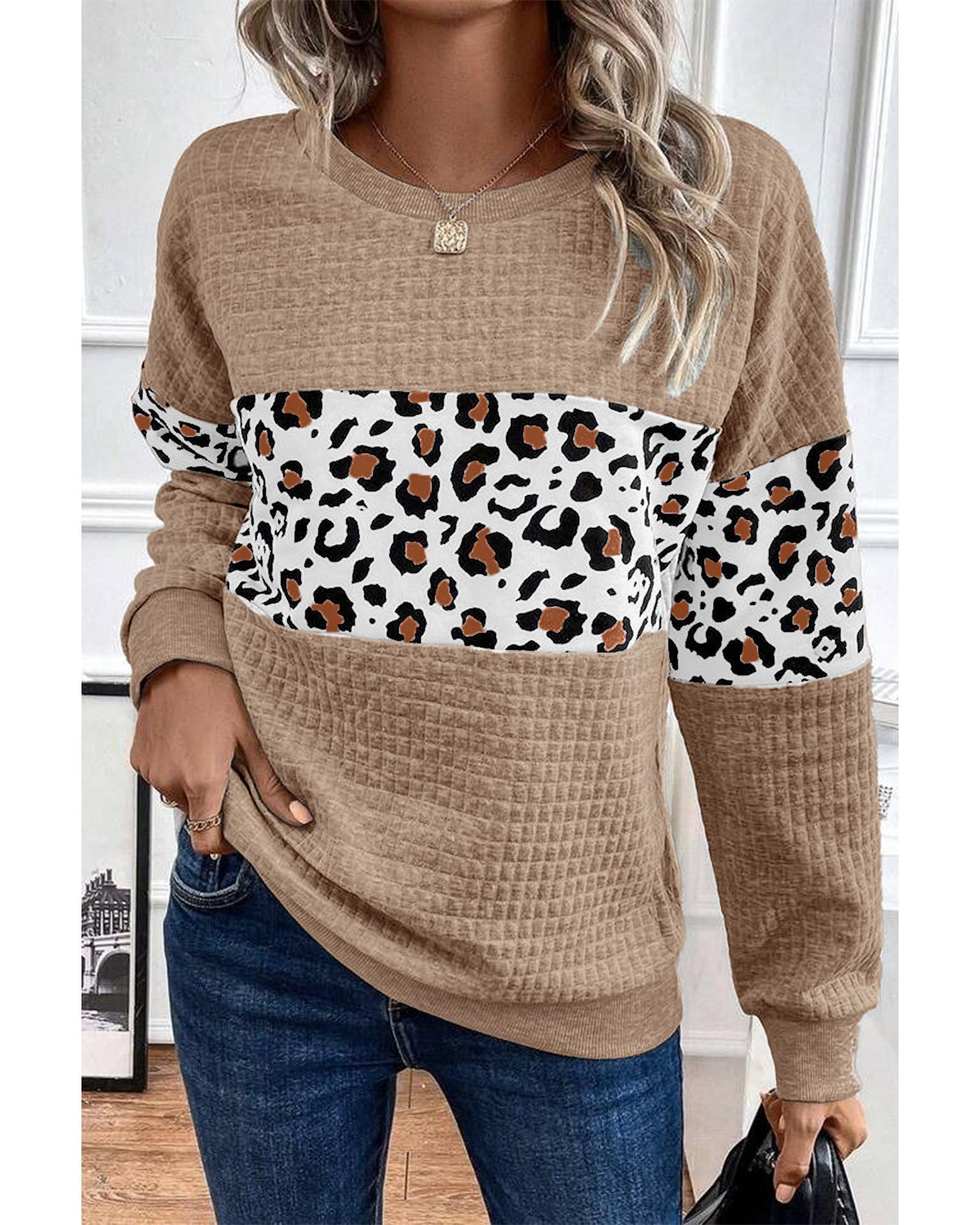 Parchment Leopard Quilted Patchwork Crew Neck Sweatshirt – S