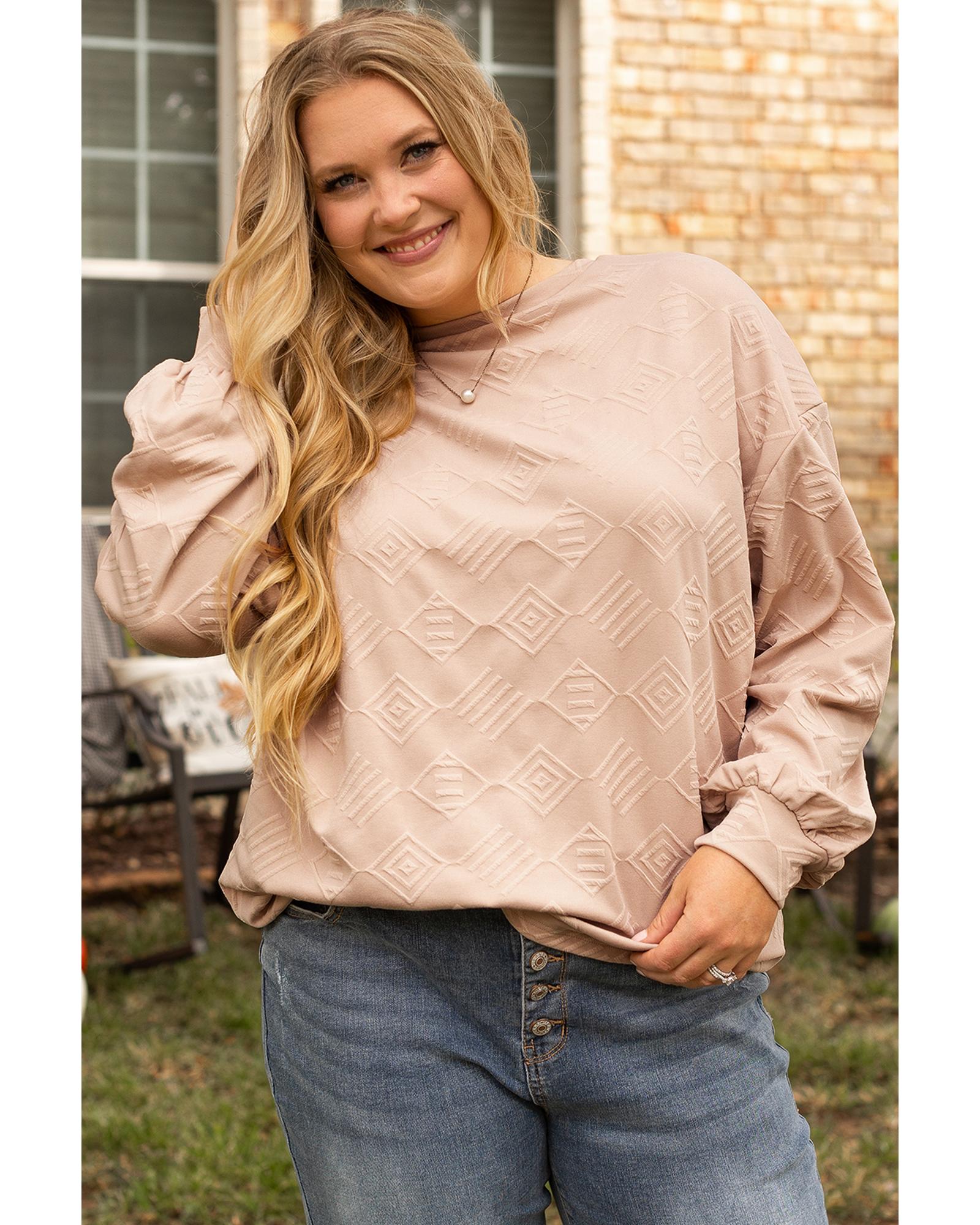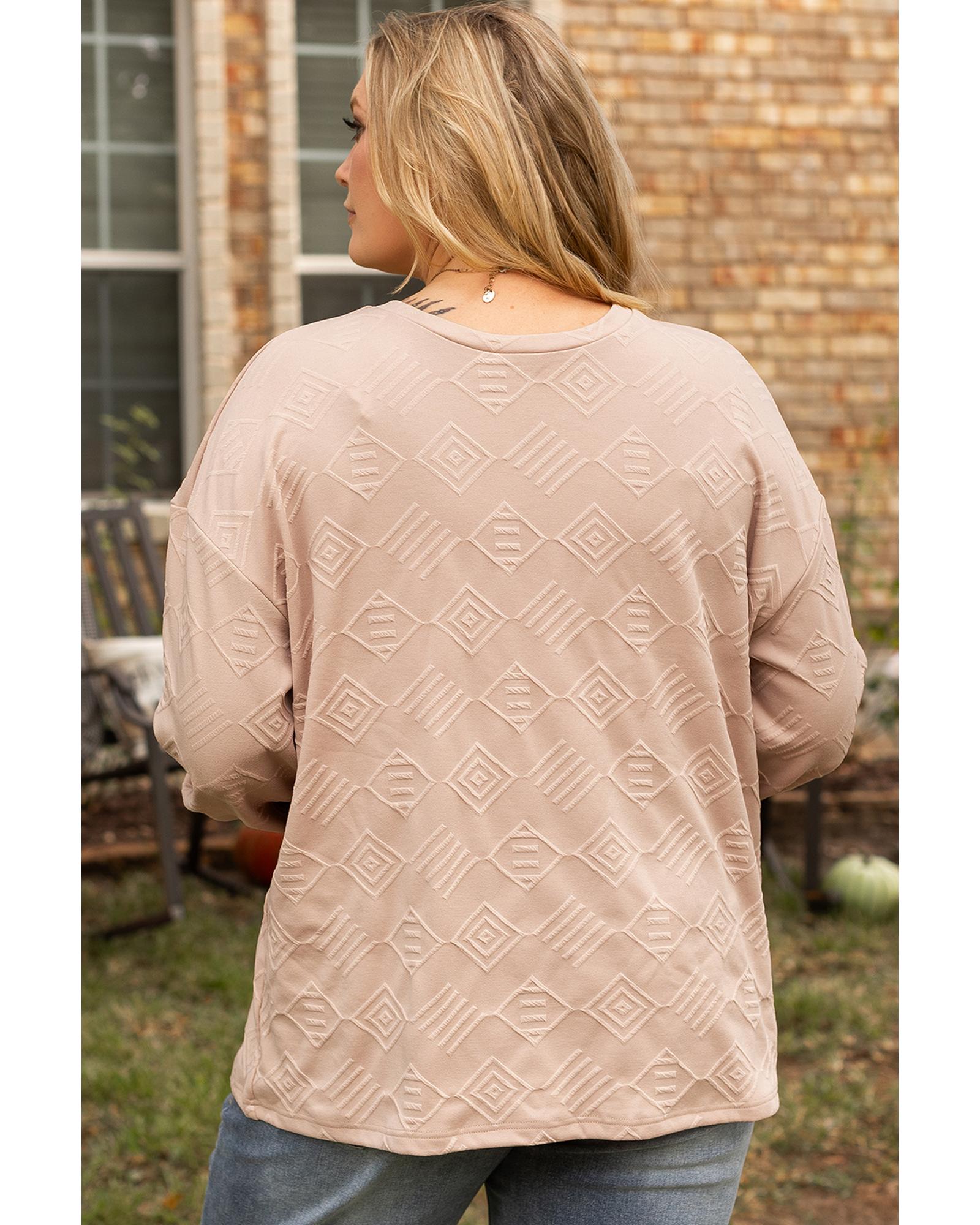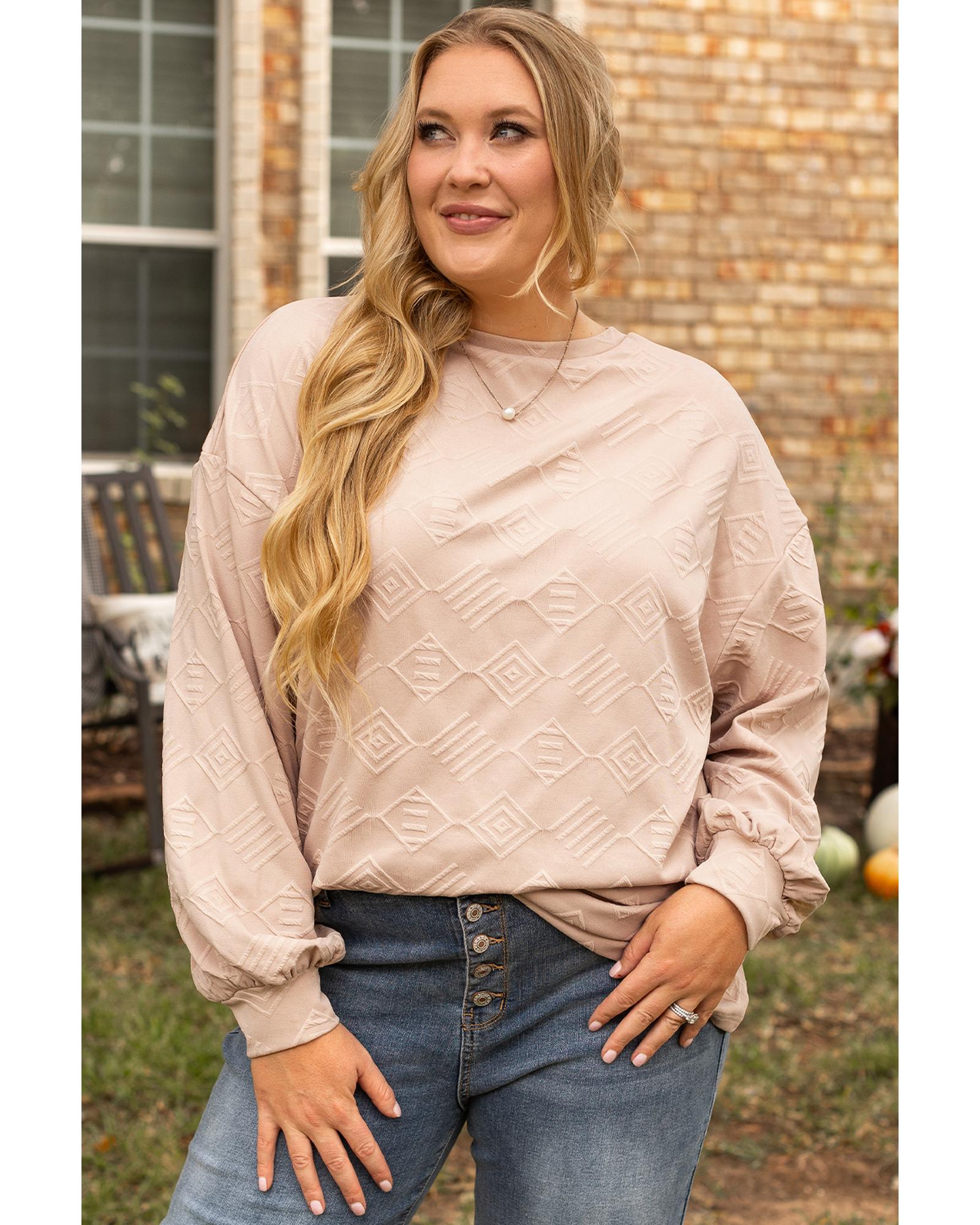 Parchment Plus Size Textured Drop Shoulder Crew Neck Sweatshirt – 2X