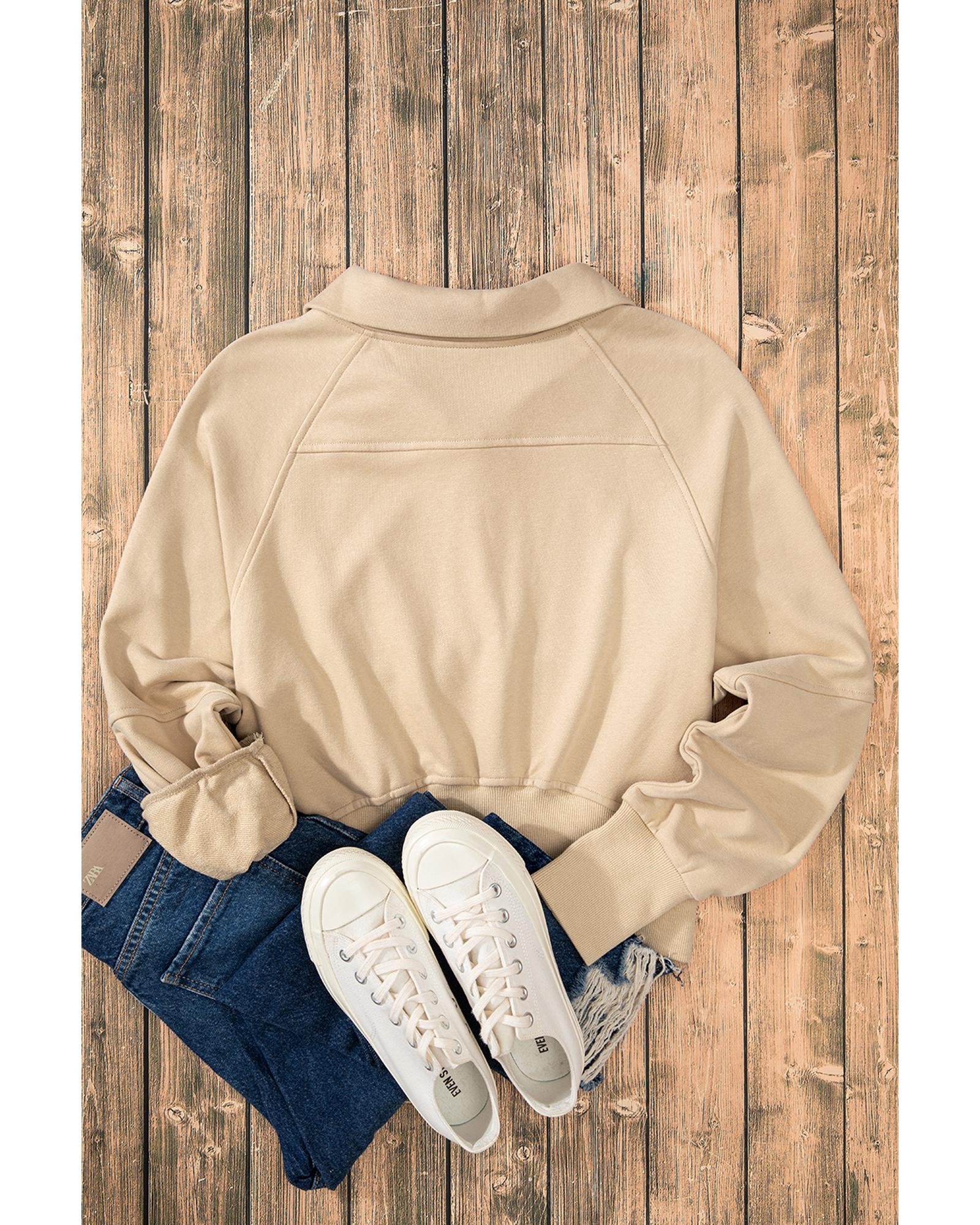 Parchment Quarter Zip Stand Neck Kangaroo Pocket Sweatshirt – S