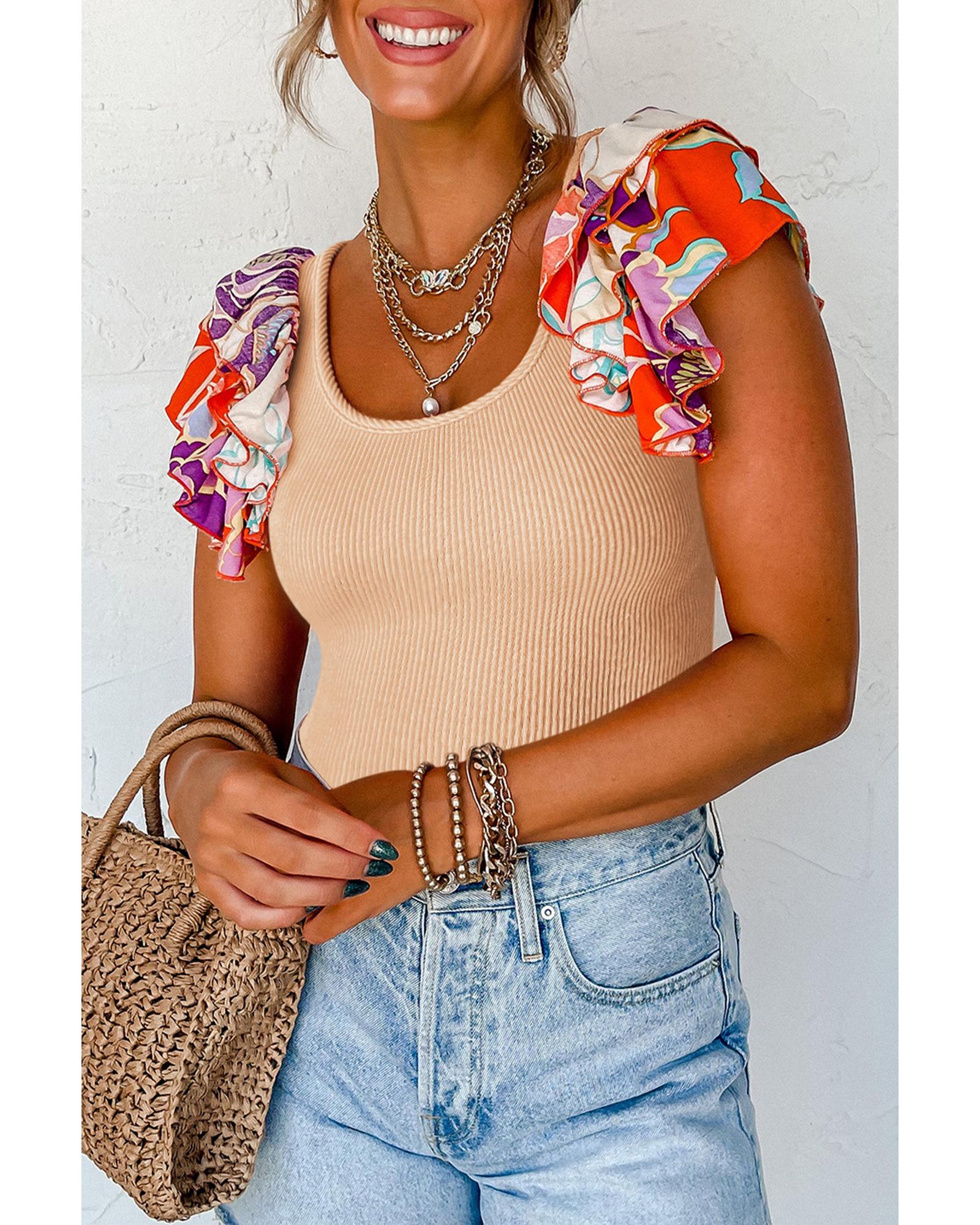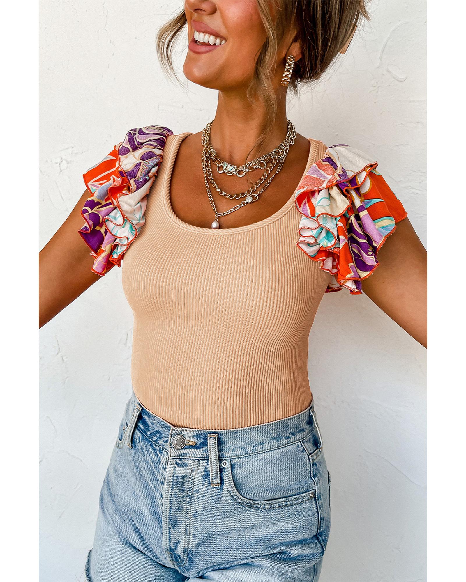 Parchment Ribbed Knit Tiered Ruffled Sleeve Bodysuit – M