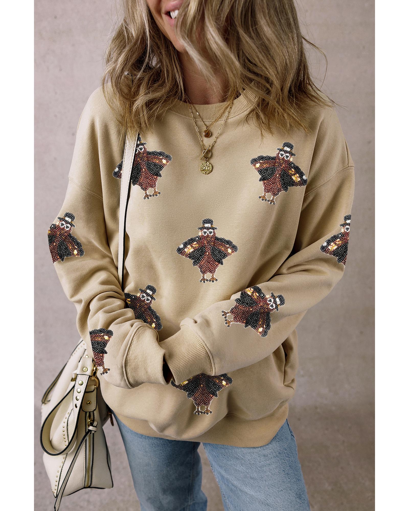 - Shimmering Turkey Pattern Thanksgiving Holiday Sweatshirt