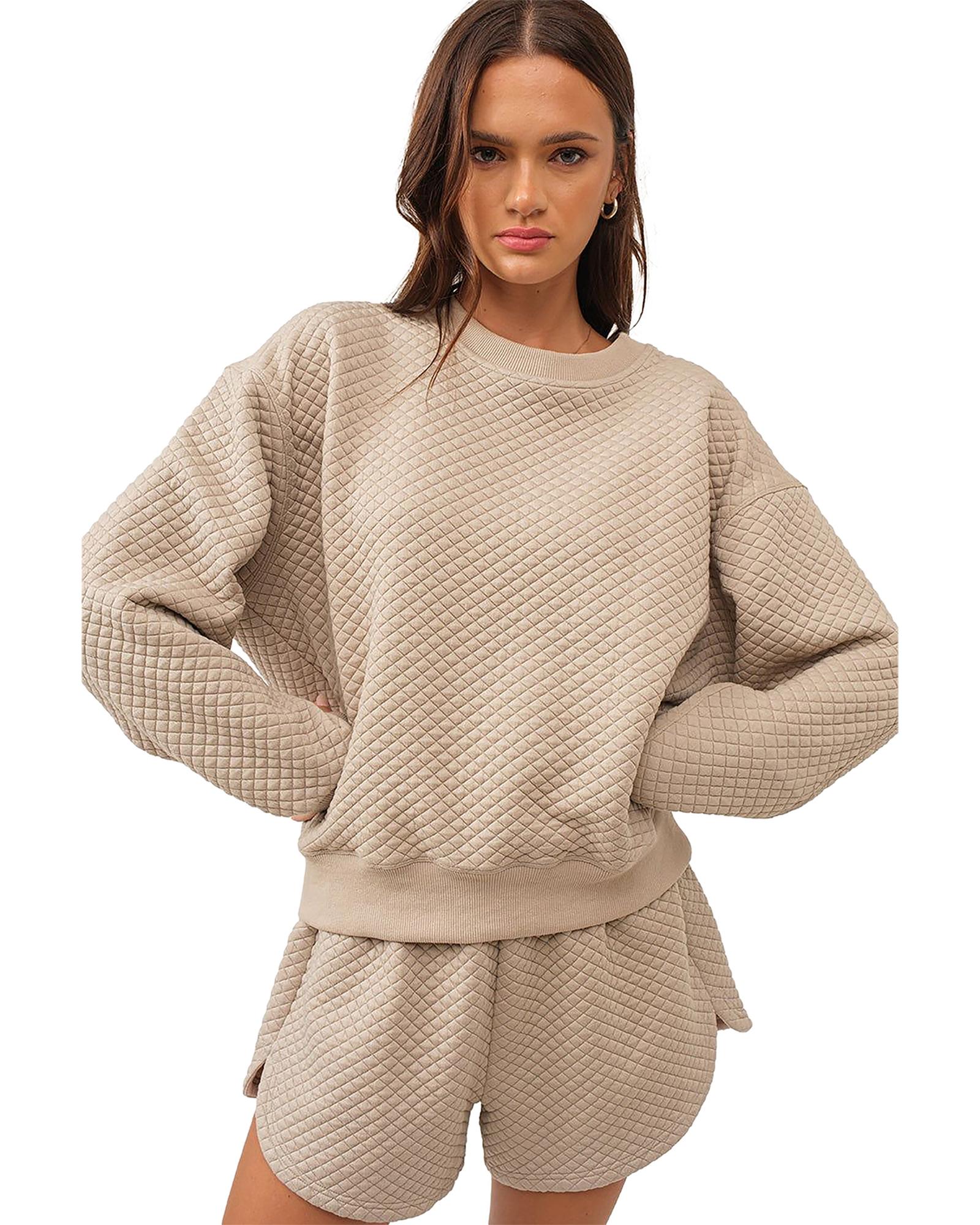 Parchment Solid Color Quilted Long Sleeve Top and Shorts Set – 2XL
