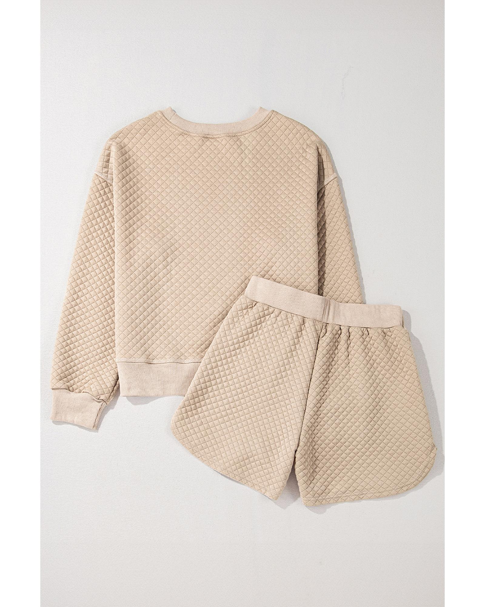 Parchment Solid Color Quilted Long Sleeve Top and Shorts Set – L