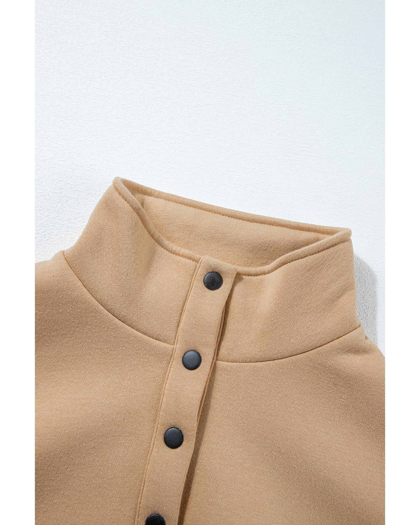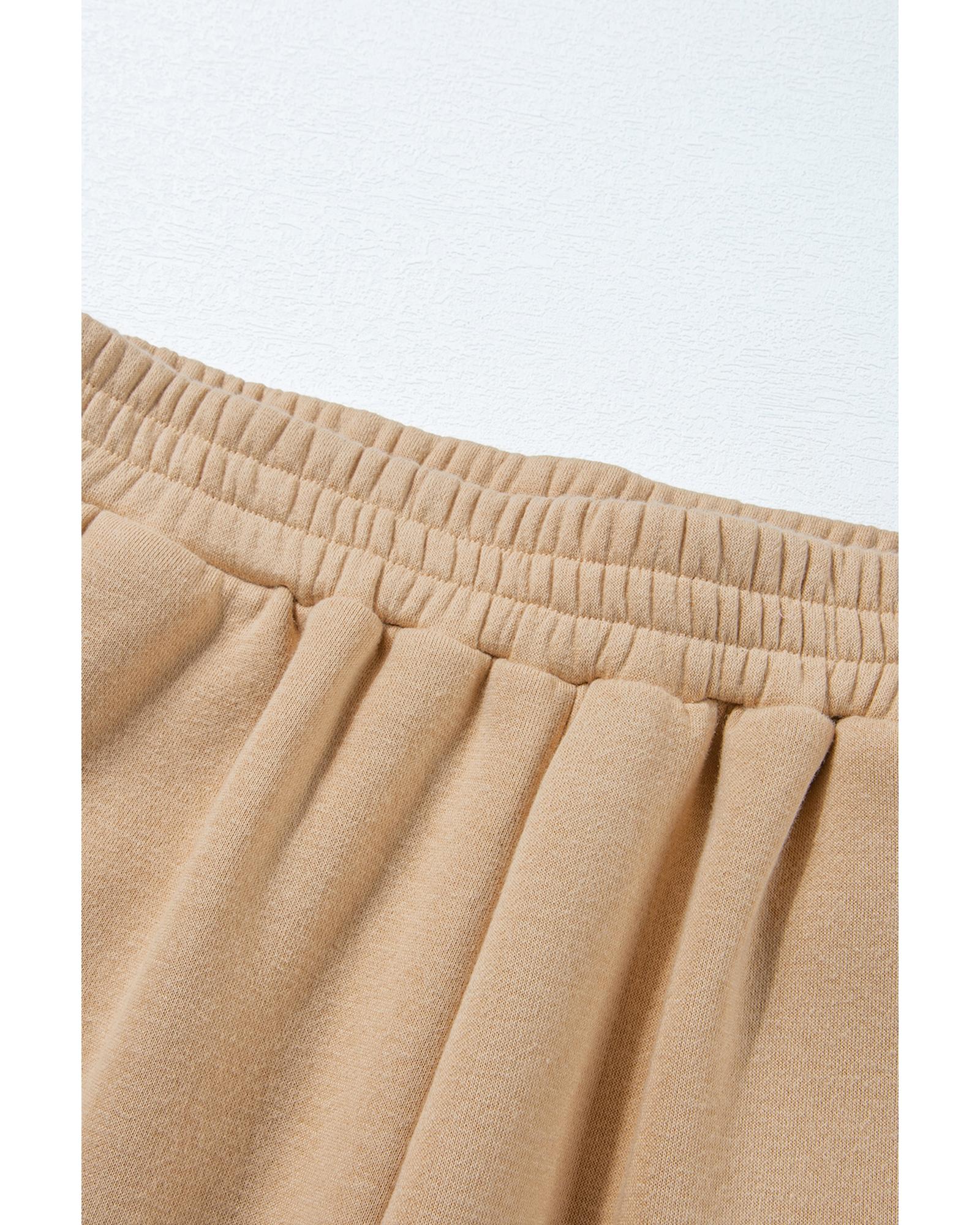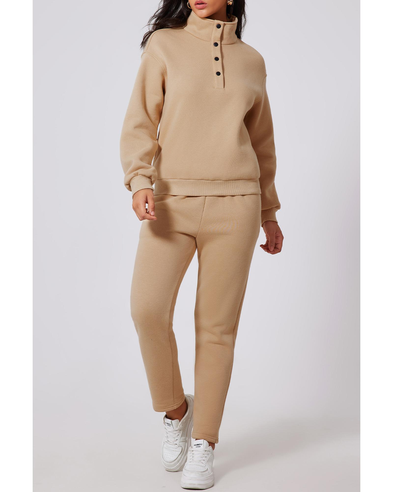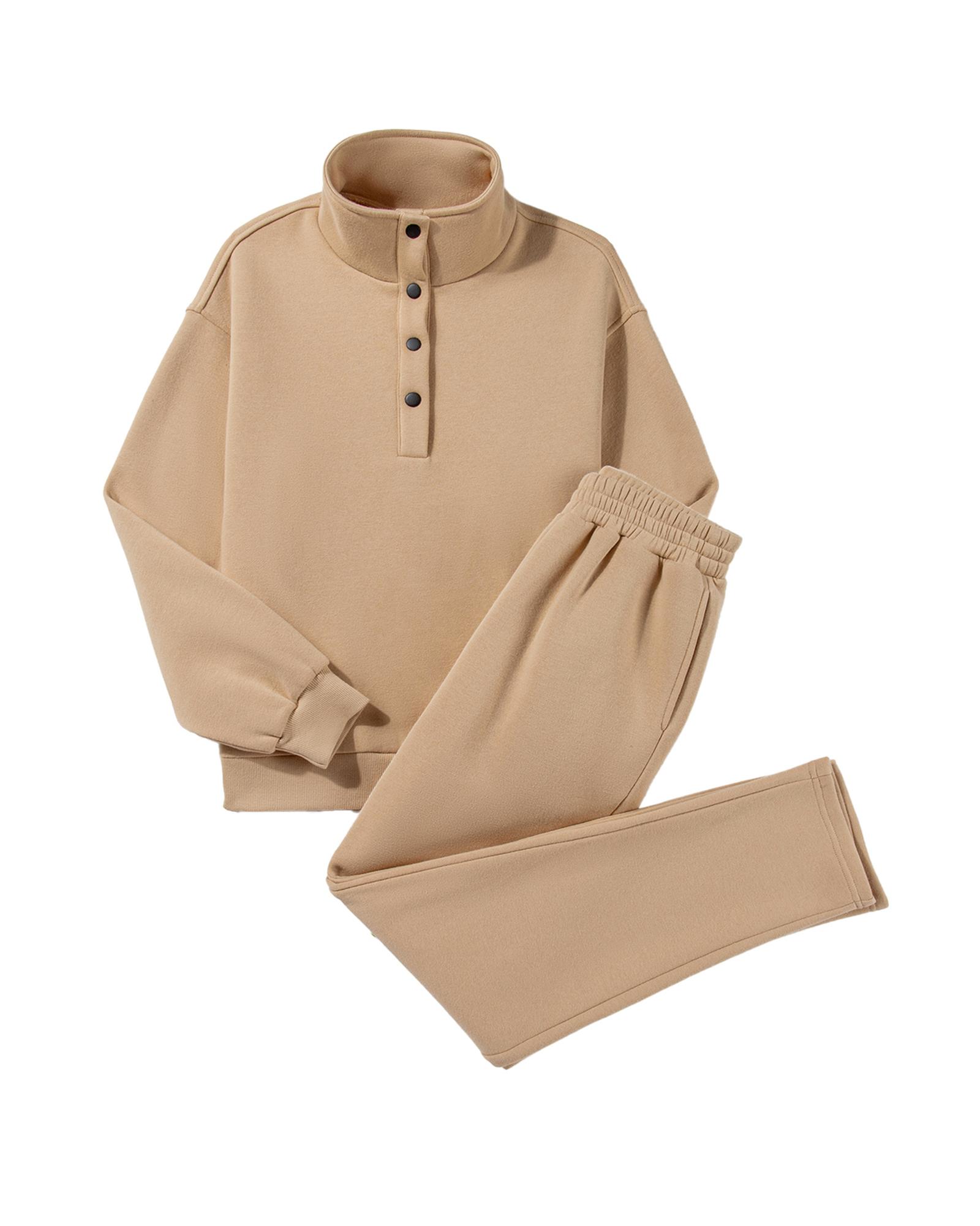 - Chic Parchment Solid Half Button Sweatshirt and High Waist Sweatpants Set
