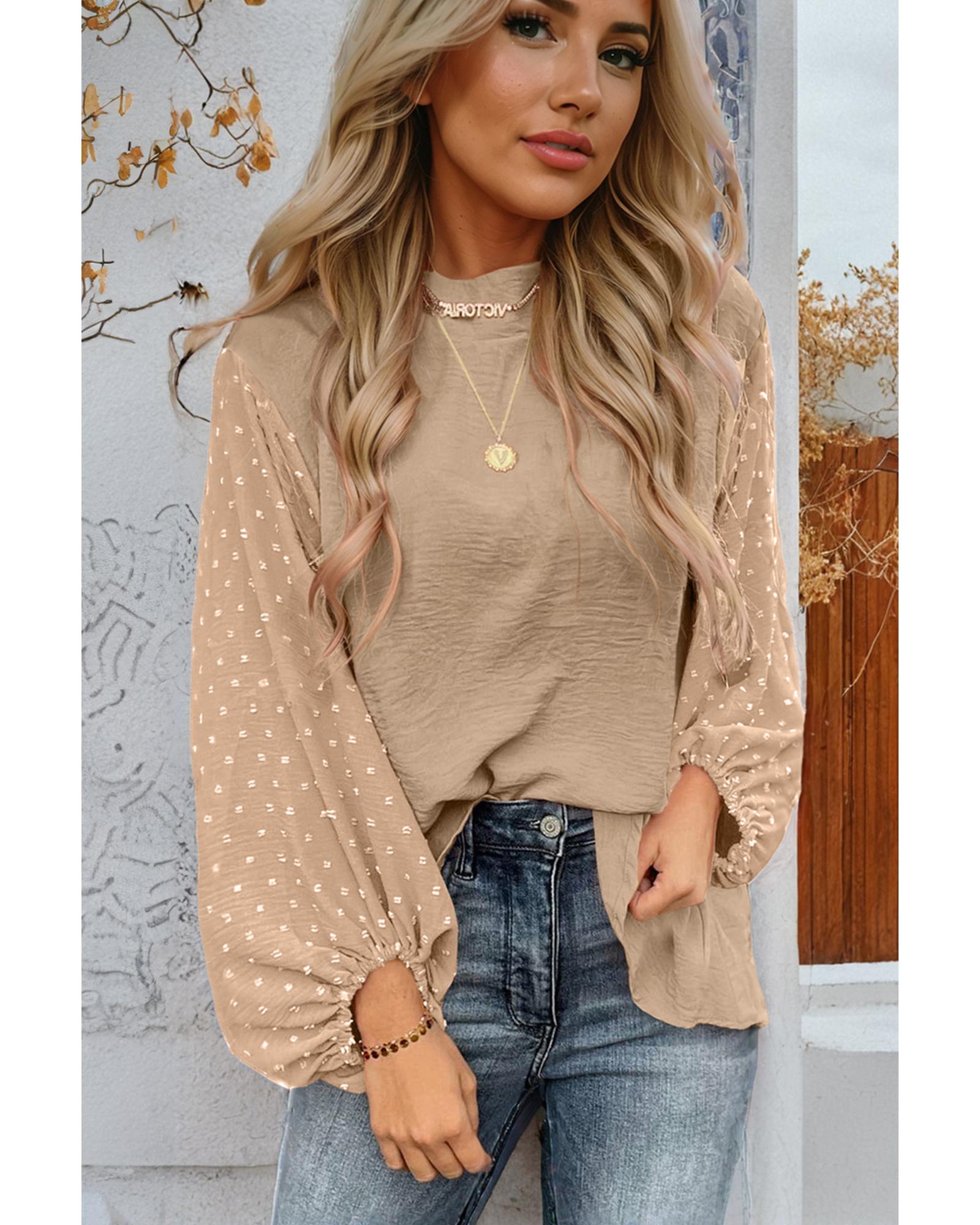 Parchment Swiss Dot Balloon Sleeve Loose Blouse – M