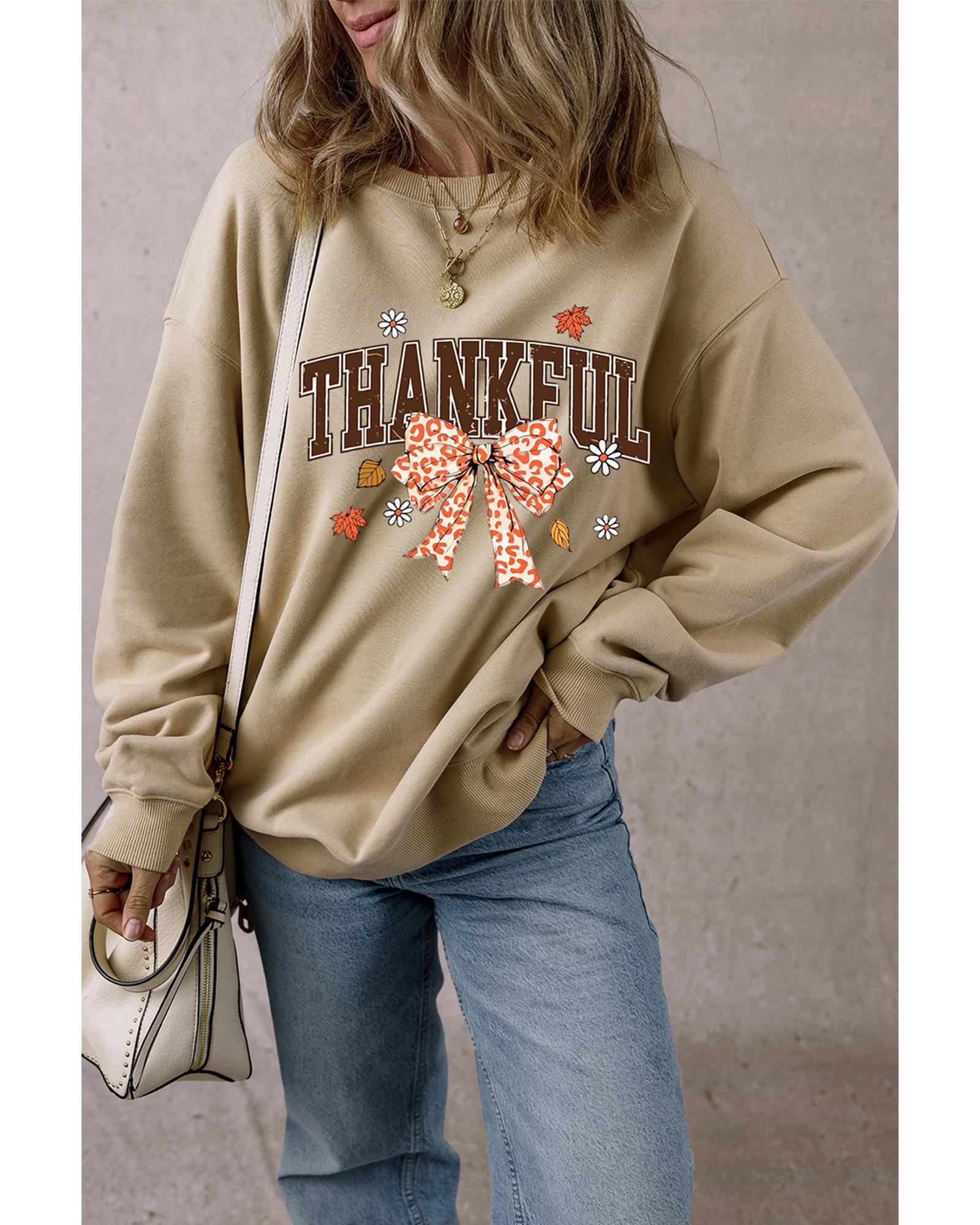Parchment THANKFUL Leopard Bow Fall Vibe Graphic Sweatshirt – M