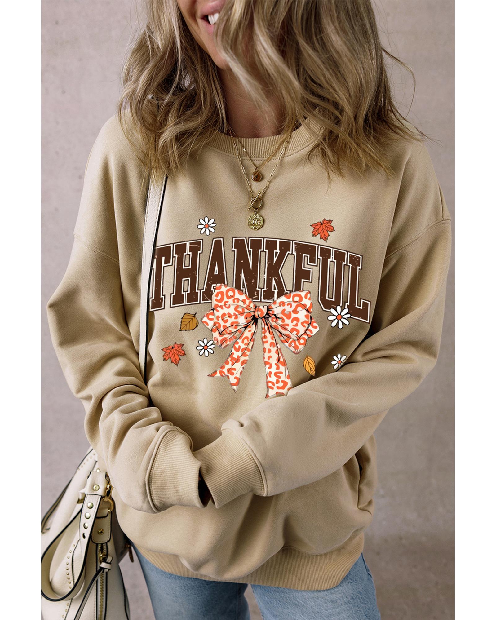Parchment THANKFUL Leopard Bow Fall Vibe Graphic Sweatshirt – S