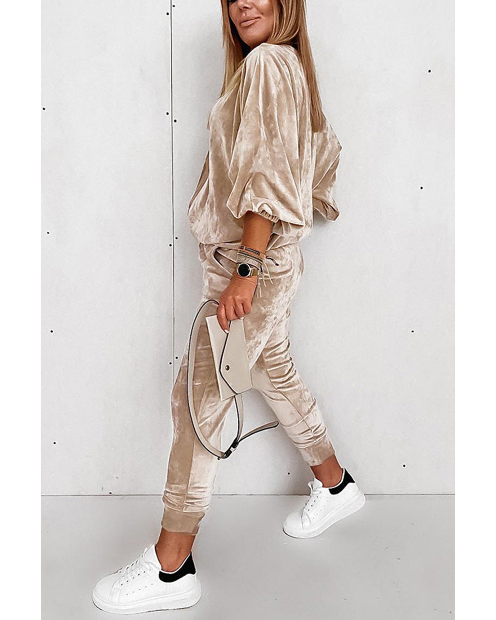 - Parchment Velvet Zipped Top and Joggers Two Piece Set