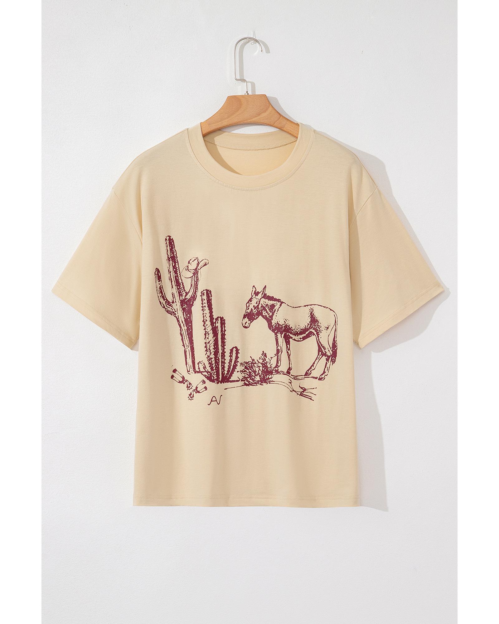 - Parchment Western Burro Cactus Crew Neck Graphic Tee
