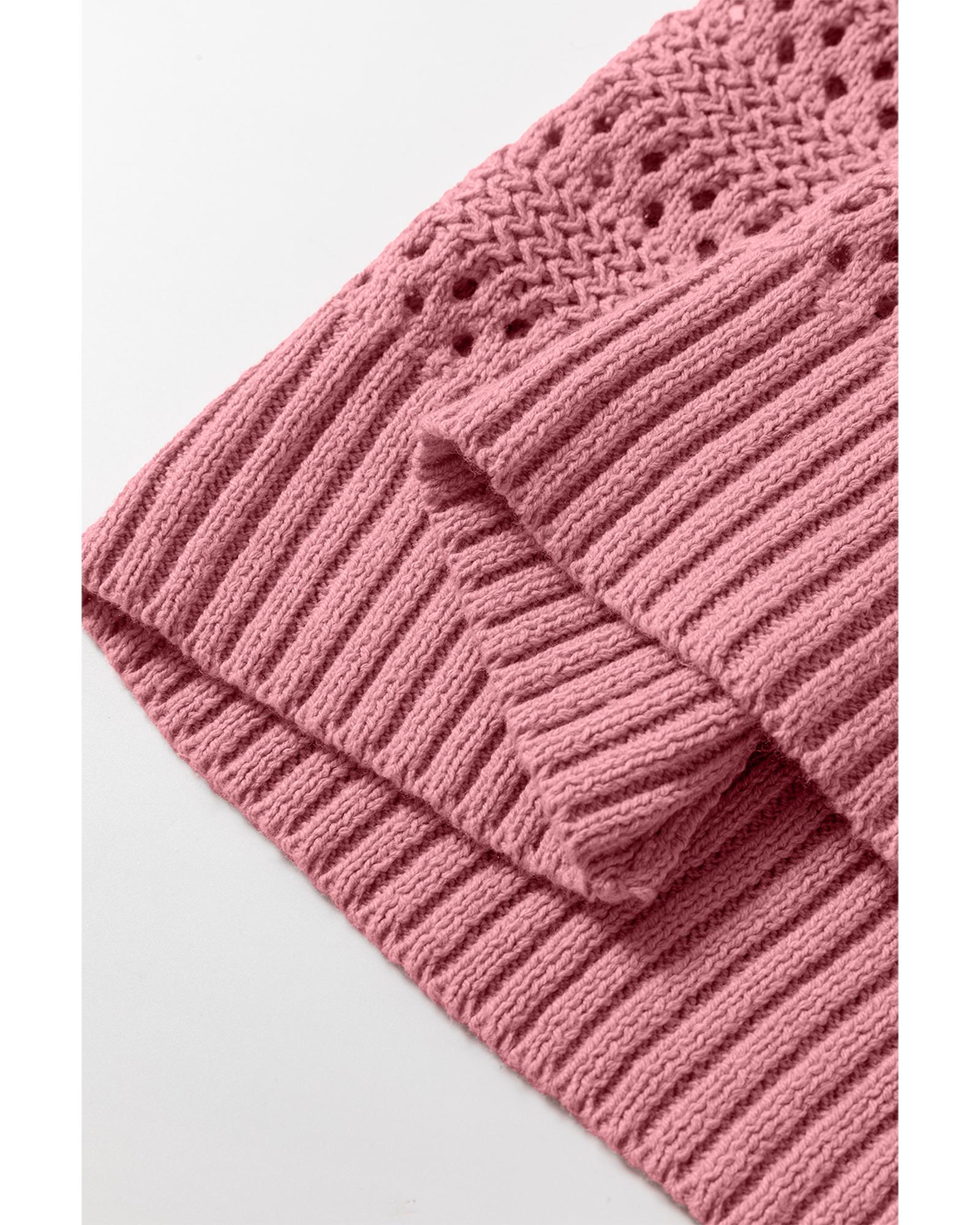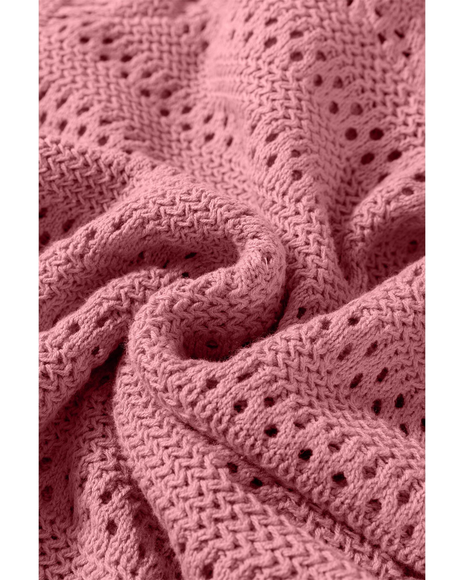 Peach Blossom Pointelle Knit Raglan Sleeve Hooded Sweater – S