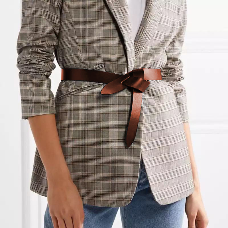 The Peroz Arla Knot Leather Belt is an embodiment of minimalist luxury, offering a chic way to cinch your waist with its distinctive knotted design. This premium tan leather belt adjusts for comfort and secure wear, making it an essential accessory for any wardrobe.
