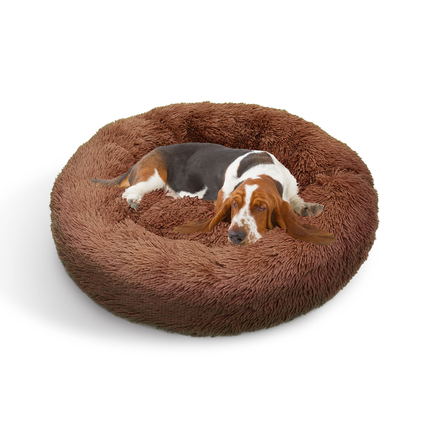 Pet Dog Bedding Warm Plush Round Comfortable Dog Nest Light Coffee Large 90cm